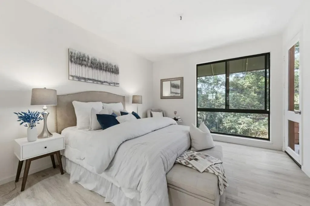 Located among award-winning Palo Alto schools, tucked away in a quiet, private setting, this exceptional top-floor residence offers refined comfort in a convenient location. The thoughtful layout features two spacious primary suites on opposite sides of the condo, a private balcony, and a cozy fireplace, ideal for both everyday living and entertaining. The updated kitchen and bathrooms showcase elegant quartz countertops that blend modern style with timeless appeal. Additional highlights include an in-unit washer and dryer, two assigned parking spaces in a secure garage, and a private storage closet. Surrounded by majestic redwood trees, the gated community offers a tranquil retreat complete with a secure lobby, pool, and spa. Ideally located near San Antonio Shopping Center and California Avenue, residents enjoy easy access to shopping, dining, parks, public transportation, and major commute routes. This home presents a rare opportunity to enjoy privacy, convenience, and an exceptional lifestyle in Palo Alto at an affordable price.
