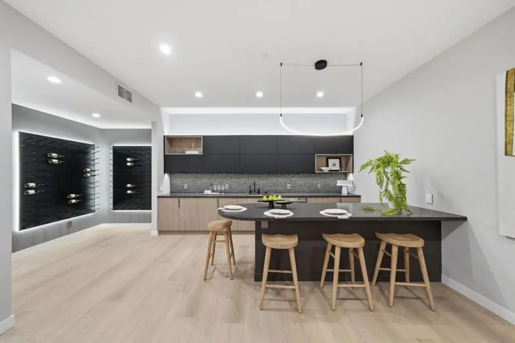 An architectural masterpiece, this stunning modern estate offers 5,213 sq ft of refined living space on an expansive 9,100+ sq ft lot, located in a peaceful, well-connected neighborhood with a strong sense of community. Soaring 15-foot ceilings and walls of glass fill the home with natural light, creating an open and airy feel throughout. The thoughtfully designed floor plan features 5 spacious bedrooms, ideal for multi-generational living, offering privacy and flexibility for adults, grandparents, and children. Designed for both everyday living and entertaining, the home includes a dual-kitchen concept with a wet kitchen and a dry kitchen. Resort-style amenities feature a private sauna and theater room. The designer kitchen showcases Miele appliances, sleek cabinetry, and premium finishes. The low-maintenance landscaped backyard provides a serene retreat, complemented by smart home technology, energy-efficient features, and solar panels. Ideally located near top-rated schools including Palo Alto High School, as well as dining and shopping. A rare offering of quality, design, and location.