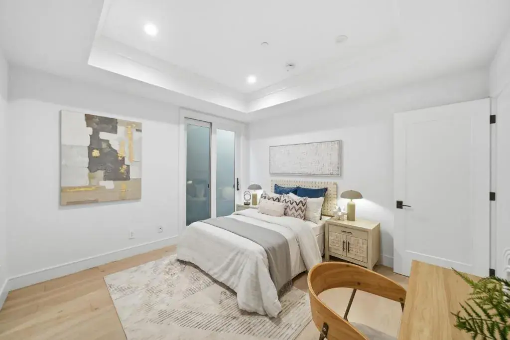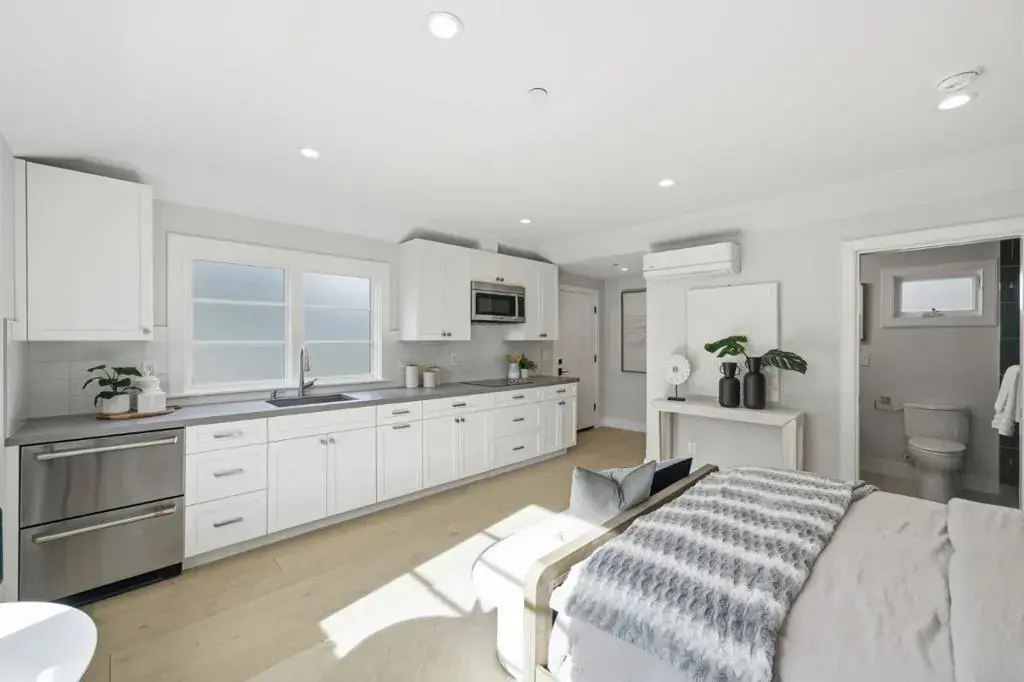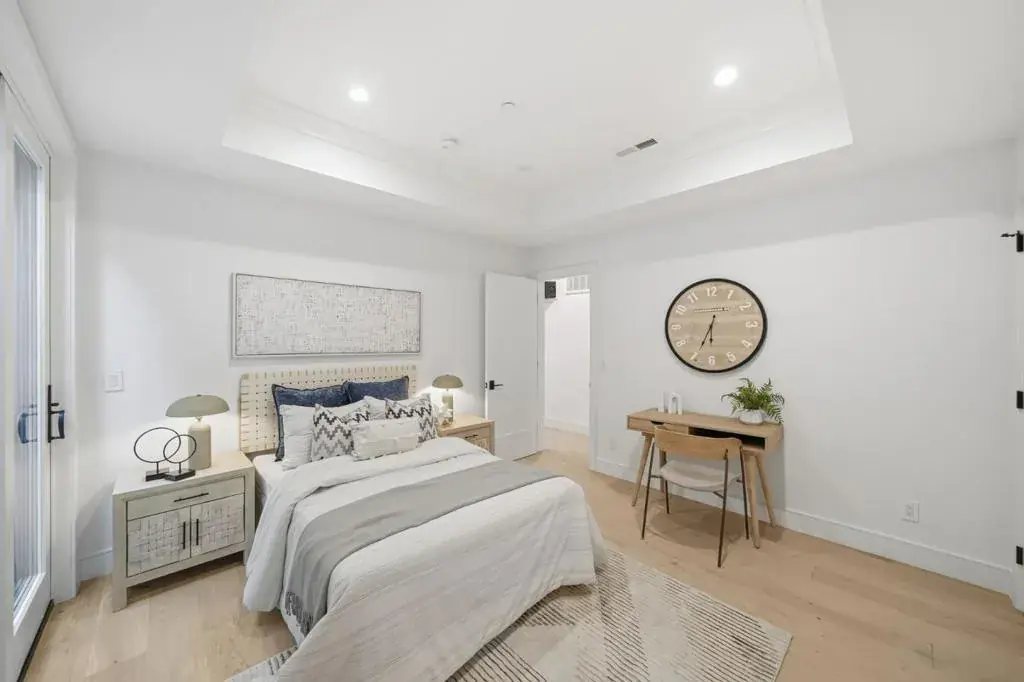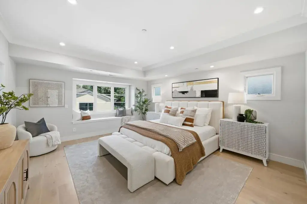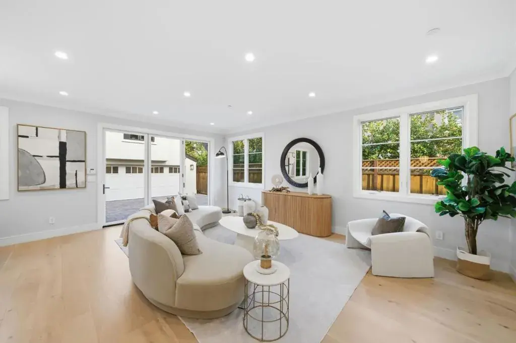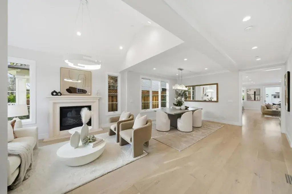 Stunning contemporary home with English cottage inspiration on a premier street in downtown Palo Alto. This artistic, light-filled residence features a flowing floor plan with soaring ceilings and premium finishes throughout. The main level offers a grand living/dining area, a spacious family room, and a gourmet kitchen with Sub-Zero/Wolf appliances and custom cabinetry. The versatile layout includes 3 en suite bedrooms on the second floor, a main-level bedroom/office with a full bath, and a lower-level guest suite. The lower level also boasts an oversized entertainment area with a custom wine cellar and wet bar. Above the detached 2-car garage is a separate, private studio with a full bathideal for guests or a quiet workspace. Enjoy unparalleled proximity to Heritage Park, cultural amenities, downtown shops and restaurants. Easy access to Stanford campus, top-rated Palo Alto Unified Schools. An urban sanctuary in the heart of Silicon Valley.