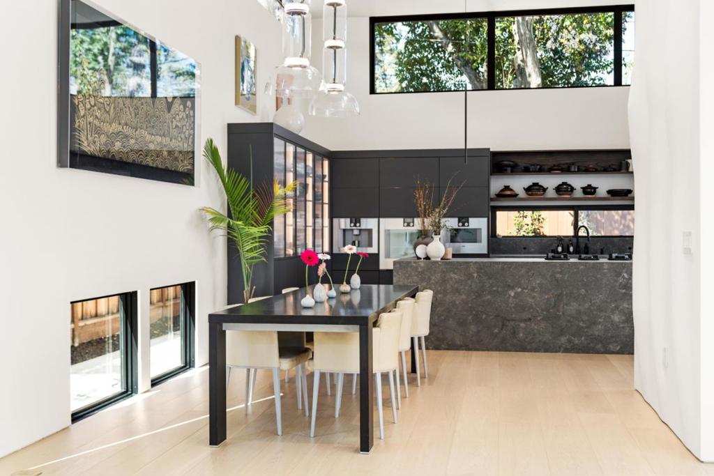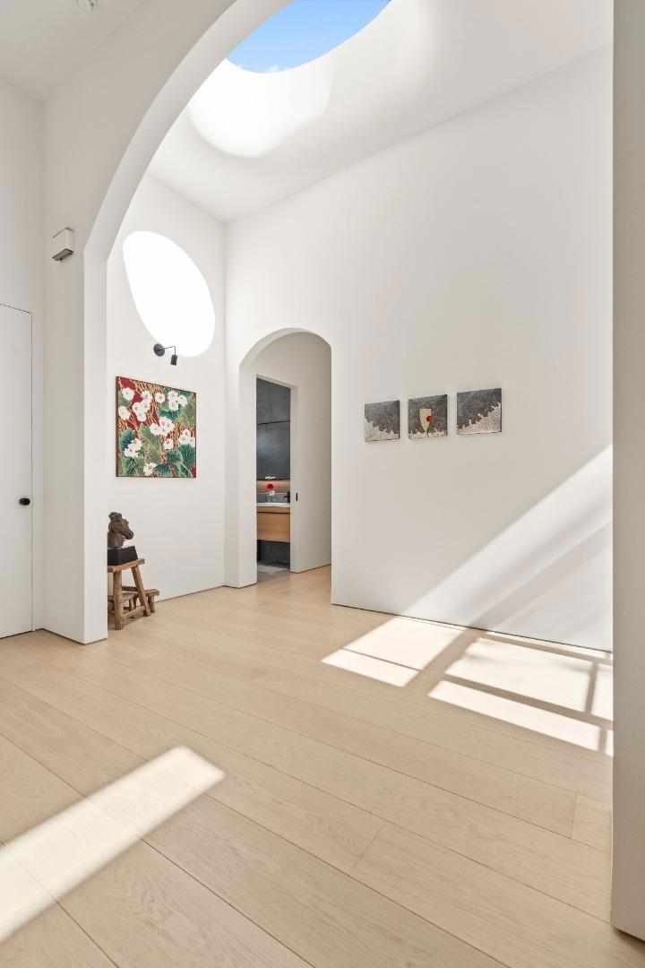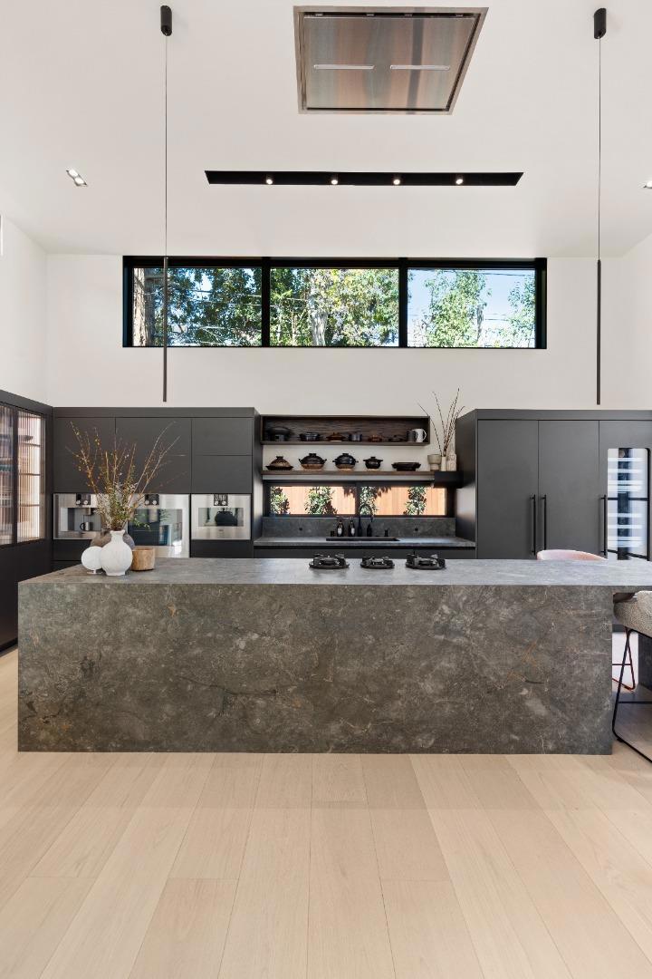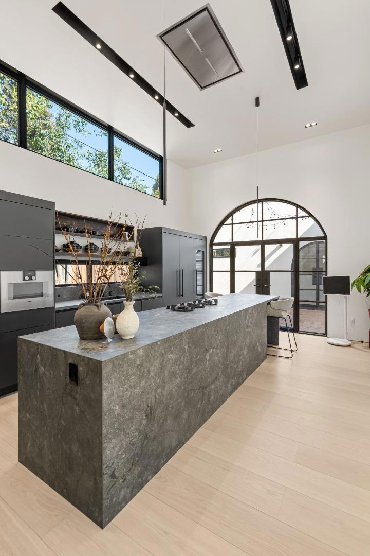 Remodeled to the studs! Nestled in the heart of Palo Altos vibrant Midtown, this completely reimagined 3-bd/2.5-ba.residence epitomizes modern luxury and refined sophistication. Spanning 2,586 square feet on a 6,276-square-foot lot, this home has been meticulously transformed with the highest quality materials and designer finishes, seamlessly blending timeless elegance with everyday functionality. Dramatic 13.5-ff. ceilings on the main level and 11.5-ft. ceilings in the bedrooms create an airy, light-filled atmosphere, complemented by 10-inch wide oak plank flooring. The living room features a sleek bioethanol fireplace + chefs kitchen outfitted with premium Gaggenau and Liebherr appliances, custom cabinetry, and a striking flush Pitt gas counter cooktop. Spa-inspired bathrooms showcase seamless Tadelakt plaster walls + floors, The luxurious primary suite includes a private four-person sauna. Fully equipped with smart home features, including integrated gadgets and fingerprint-access technology. Major infrastructure upgrades include new water and gas lines, a new sewer connection, new HVAC, and a new electrical meter. Oversized insulated steel front and patio doors enhance both design & efficiency. Located near Greer Park, Midtown Shopping , California Ave, Stanford, Caltrain.