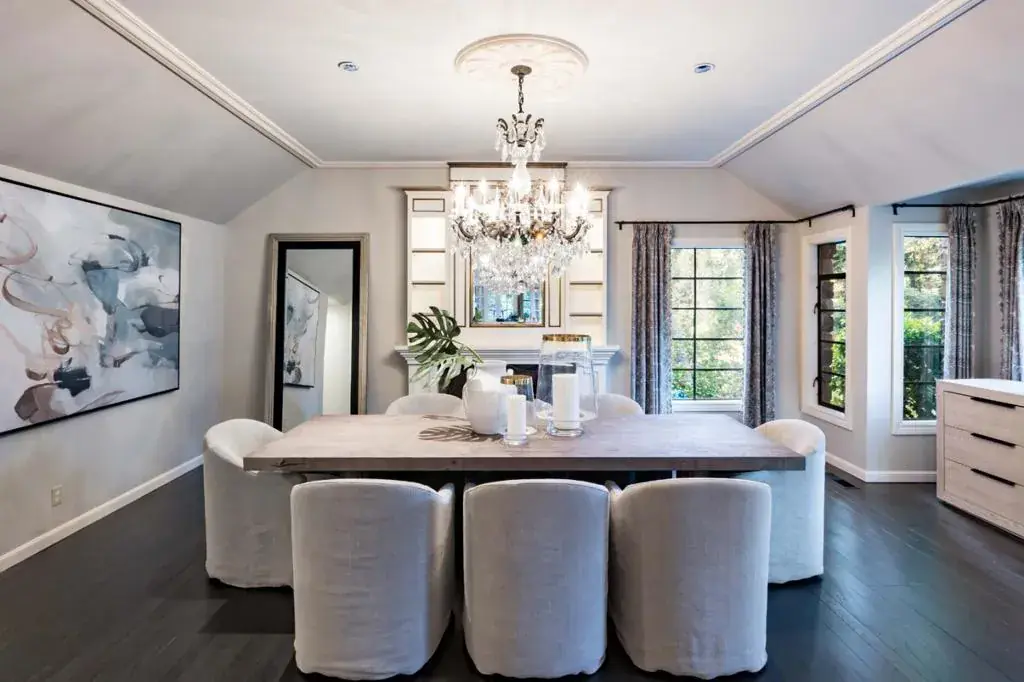 Shaded by towering redwoods and nestled beside the Palo Alto Hills Golf & Country Club, this exceptional Tudor estate offers a rare blend of grandeur, privacy, and natural beauty. Set on a full acre, the main home spans over 6,200 square feet of light-filled interiors with soaring ceilings, fine millwork, rich hardwood and tile floors, and expansive formal spaces ideal for entertaining. A walk-out family room and chef’s kitchen with premium appliances provide comfort and functionality, while multiple fireplaces add warmth and charm. The flexible layout includes a bedroom that doubles as an office, and a luxurious primary suite. Multi-level, masterfully landscaped grounds feature a saltwater pool by a peaceful waterfall, an outdoor kitchen, fire pit patio, pool house with sauna and fireplace, and a separate 1-bedroom guest house. With AC, a 3-car garage, and a prized Palo Alto Hills location, this home offers the ultimate in private, elevated living.
