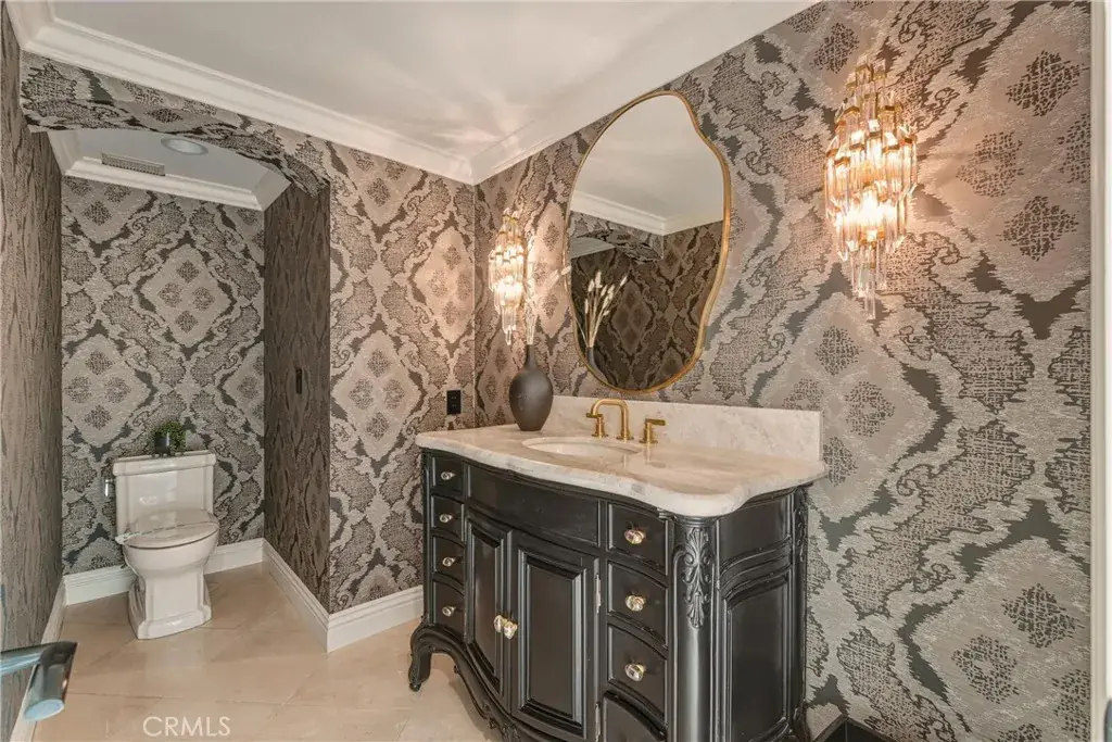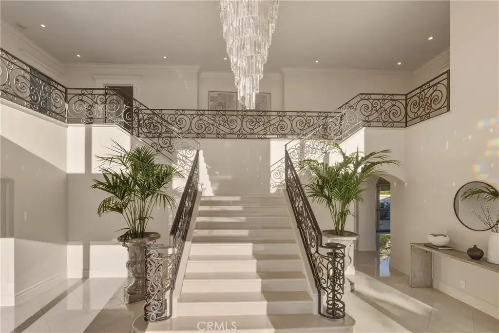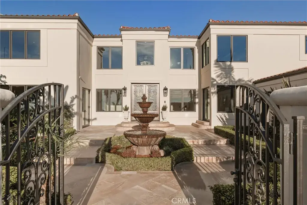 A stunning front courtyard sets the tone, welcoming you into a grand entry that immediately conveys scale and refinement. The main level is perfectly appointed for both everyday living and entertaining, with sun-filled interiors that include a guest bedroom or private office, formal living and dining rooms, a spacious family room, and a beautifully designed kitchen with an adjacent butler’s pantry. Additional amenities include a powder bath, secondary bath, sauna, wine cellar, and a well-equipped laundry room. A state-of-the-art Crestron system seamlessly controls lighting and sound, elevating the home’s comfort and convenience.