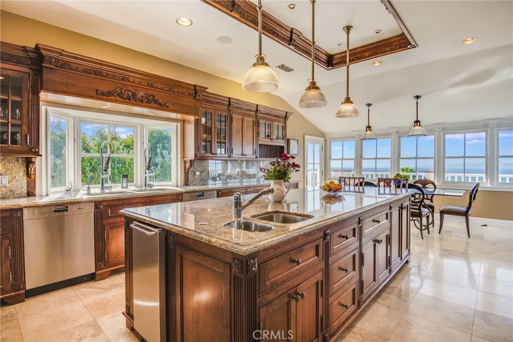 Best Deal in Palos Verdes!! .Located in the best area of Palos Verdes. Most private, resort-like, ocean view, extensively remodeled 5 bedrooms 7 bathrooms 4 car garage luxury estate. The professional grade kitchen has a 60″ Wolf range; a 32″ indoor BBQ grill; ice maker, Viking warming drawer; double Miele dishwasher; Double clean-up sink; two 36″ Subzero refrigerators and more. Two luxurious master suites, two guest suites, two livingrooms, office and temperature controlled wine cellar. Central, zoned air conditioning. Park-like back yard with swimming pool, spa, outdoor BBQ area and open-beam patio eating area. Featured lighting and sound system are great for entertainment and party!
