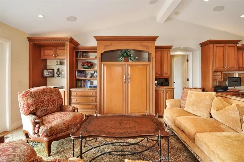 Set on one of the area’s most coveted streets, this single-level residence unfolds across 2,849 square feet of light-filled living space where travertine and hardwood floors, vaulted ceilings, and thoughtful custom details create a warm yet elevated atmosphere. The floor plan flows beautifully from the formal living and dining rooms into an expansive great room with breakfast area, custom built-ins, and a gourmet kitchen with center island—perfect for everything from casual mornings to lively dinner parties.