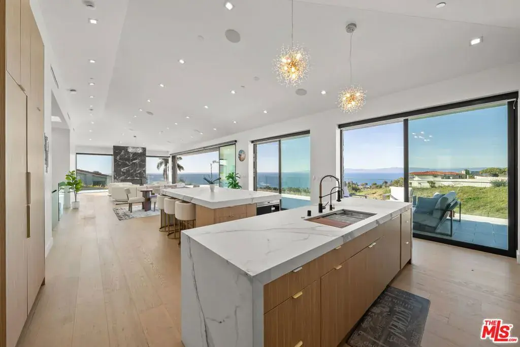New Construction Ocean View Paradise in Palos Verdes Estates. Escape to calm and serenity in this custom luxury-built quiet retreat. While taking maximum advantage of the amazing ocean views from every room, the home has been “built to live in” which is that warm feeling you get throughout the property. Floor to high-ceiling Fleetwood doors are on every level, opening to showcase the massive entertainment decks and beautiful ocean water. The main level great room can accommodate any configuration needed, from small intimate dining to grand entertaining. The gourmet kitchen incorporates stunning Italian porcelain countertops, Wolf appliances, a buffet island for dining, and a complete auxiliary butler’s kitchen. Relax outdoors under the pitch-black night sky which is perfect for stargazing, with a sense of calm and quiet all around you. The bottom deck has a PebbleTec pool and spa with a cozy firepit area. Framed with mostly steel construction across all floors, the walls have been insulated with careful attention paid to soundproofing. Elevator-equipped for easy access to all levels. Bang & Olufsen speakers provide an audiophile level of music enjoyment that can be controlled from your smartphone. The home also features a 26 kilowatt solar panel system that comes with the property. Plenty of parking is available on the entry level, as well as separate 1 and 2 car garages. There is also an attached, full-kitchen ADU, accessed from the bottom level. Square footage includes a 325 SF theater room and a 185 SF walk-in closet and server room which were created from storage space not in the original plans.