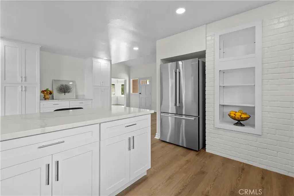 Beautifully remodeled and updated three bedroom and two bathroom Lunada Bay Home. Comfy and cozy home features an open floor plan with abundance of natural lighting. High vaulted ceiling in the living room with cozy fireplace and ocean views. Home features an elegantly designed kitchen with custom self-closing cabinets and drawers, quarts counter tops, new stainless steel energy efficient appliances, kitchen counter, custom pantry/dining off kitchen, new energy efficient window, new interior & exterior paint, new tile roof, new interior doors, Central AC/Heating, new laminate flooring throughout, recessed lighting, home recently fumigated (termite clearance), laundry room. Full bathroom beautifully remodeled with elegant decor. Spacious primary suite with walk-in closet opens up to inviting and entertaining landscaped backyard, beautifully and tastefully remodel primary bathroom with dual vanities, quarts counter top, custom fixtures, tile flooring, skylight for natural sunlight and spacious walk-in shower. Attached 2-car garage with additional parking in driveway and backyard, low maintenance front yard. Conveniently located across the street from Lunada Bay Village, restaurants, shops and beaches and Lunada Bay Fountain.