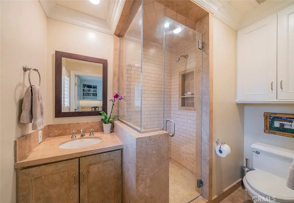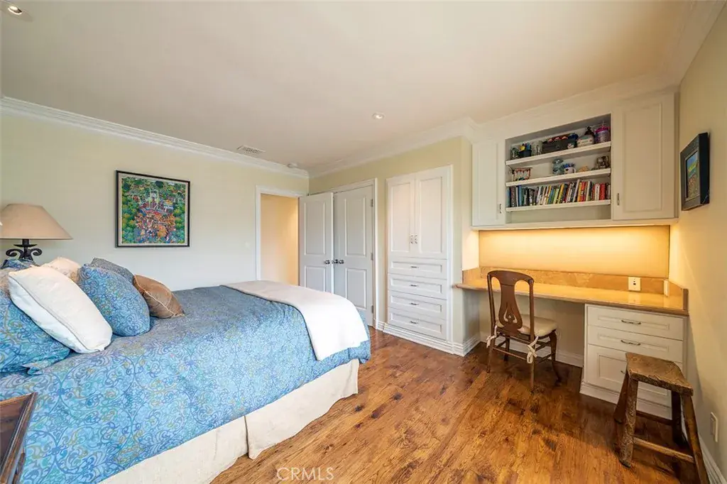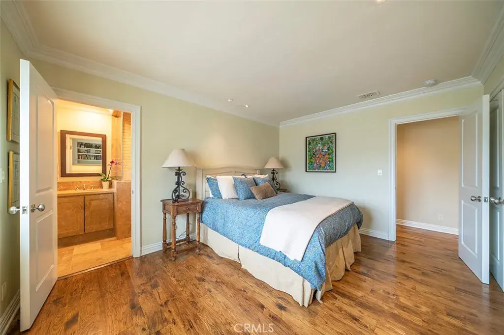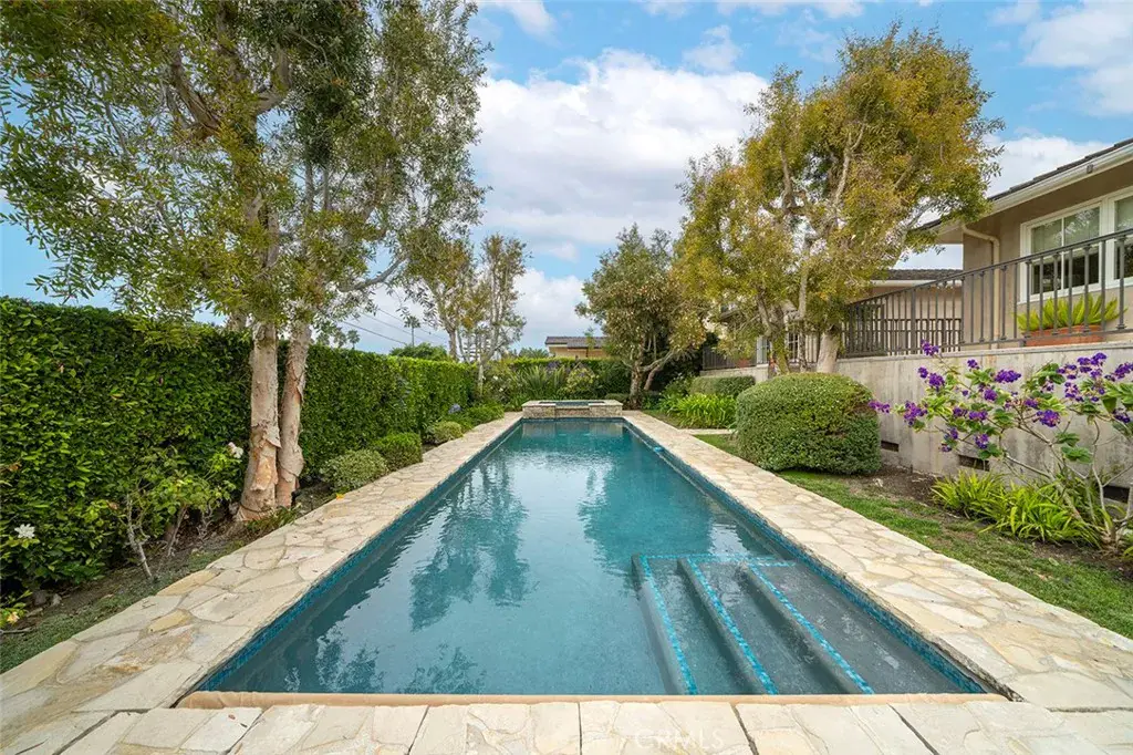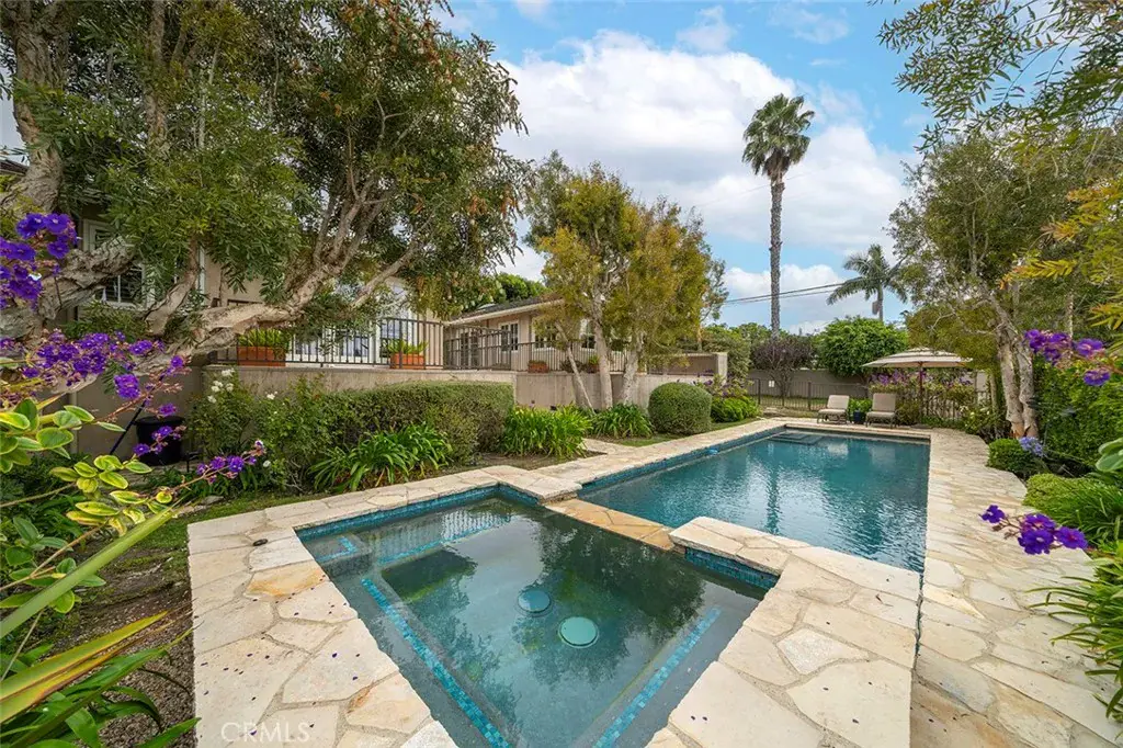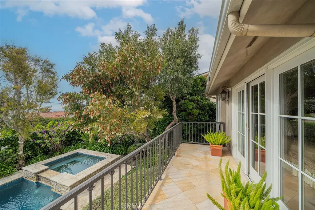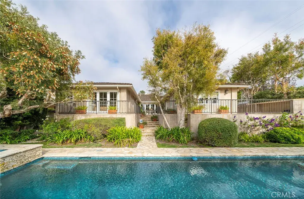 This Lunada Bay stunner is FULLY FURNISHED to allow you to travel through life light — and settle right in! This 2,770-square foot home is ready and waiting for you on coveted Chelsea Road, a block from the bluffs, on a 10,883 sq ft lot with resort-like landscaping and pool. Remodeled from the foundation up, with custom details and luxury appointments throughout, this single-story executive-worthy home, with pecan/hickory hand-carved floors, has been impeccably designed and furnished by renowned designer Jim Sams. The gated entrance greets you to your private, sunny front courtyard with fountain and room to relax. As you step inside the home, you’ll find it lives MUCH larger than it looks and has fabulous indoor/outdoor flow, with outside access from most rooms of the house. The spacious open-floor plan comprises the living room, designer custom kitchen, formal dining area, and library (or office) with Murphy bed. Gather with family or guests in the great room, with built-in cabinetry and bar, and 55-inch television. The living room features a gas-burning fireplace and peek-a-boo ocean views. 4 bedrooms, 4 bathrooms. The Chef’s kitchen features a large center island, beautiful granite tops, custom cabinets, all the appliances and dishes you’ll need to dine and entertain:a GE Monogram Built-In refrigerator & freezer, a Wolf Professional 6 burner range, (extra GE Electric professional oven, microwave and butler’s pantry with refrigerator. Bonus for wine lovers — a whisper-cool, climate-controlled wine room for approx. 250 bottles. When you’re ready for rest, the master retreat has a large walk-in closet, a luxurious master bath and French doors that open to an elevated terrace. Two other spacious bedrooms are also ensuite, and have built-in desks and walk-in closets. The 4th bedroom (or office) has a Queen-sized Murphy bed and built-in shelves, desk and files to keep you organized. Stepping back outside, the rear patio provides loads of privacy, with infra-tech heaters and a wonderful table for dining alfresco. The comfortable outdoor furniture, salt-water pool and jacuzzi are the finishing touches on what is like living at a 5-star resort. An attached 2-car garage. Surround-Sound inside and outside, A/C, monitored security. Located right by the bluffs of Paseo del Mar, Close proximity to all 3 PV award winning schools and Lunada Bay shops and restaurants. Owner pays for Water, Pool Service and Gardner! A aprox $1,000 credit to tenant!