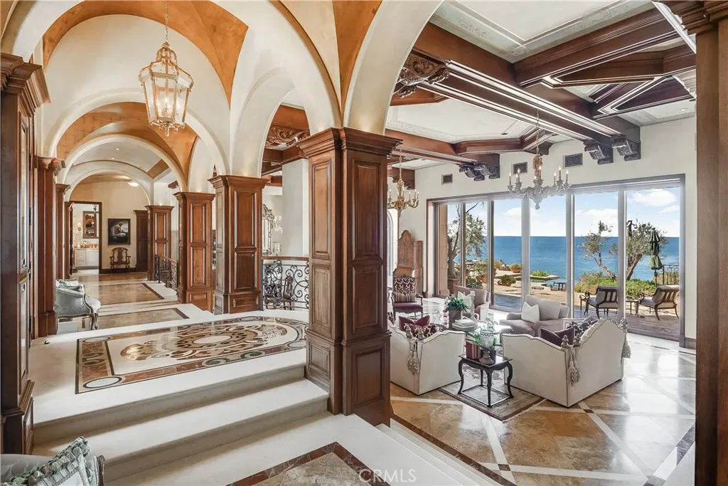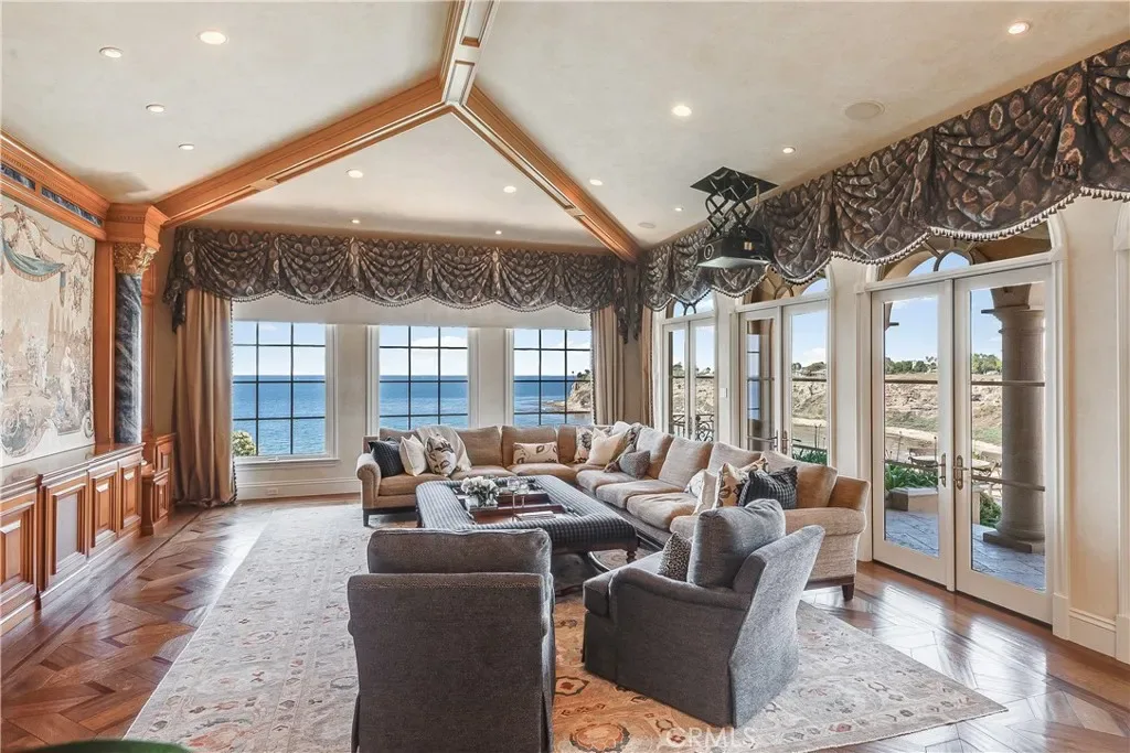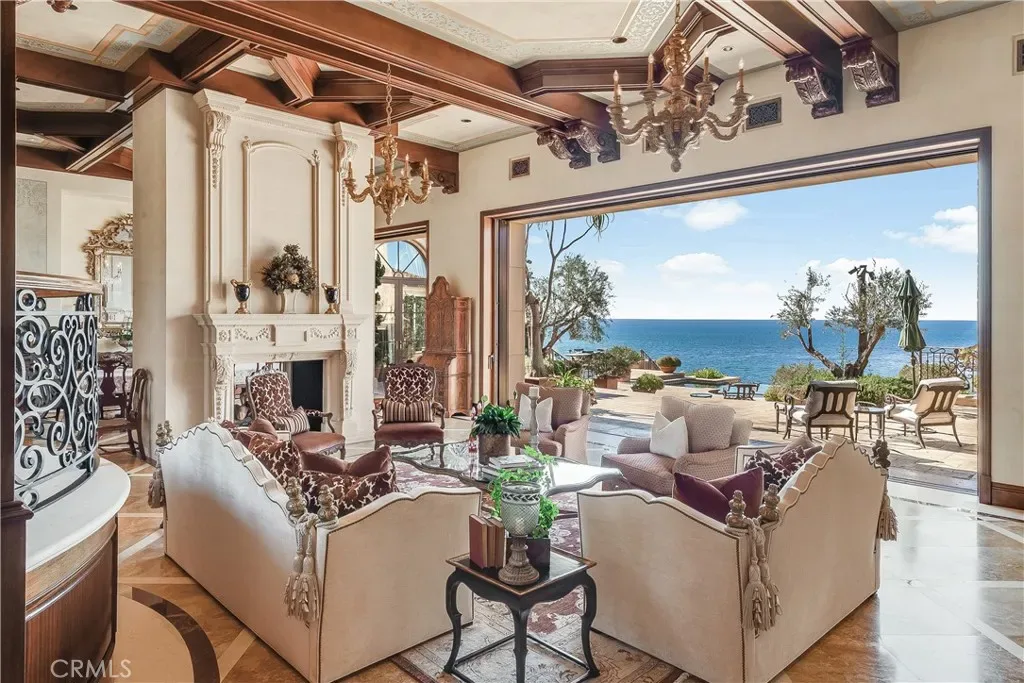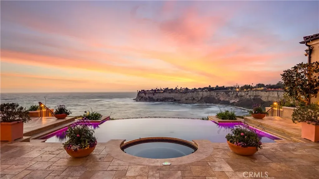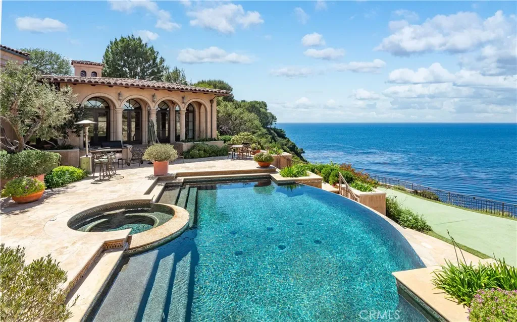 Spectacular, Rare, and Majestic! A once-in-a lifetime estate that welcomes you to the coastline of Palos Verdes Estates, overlooking Lunada Bay at Resort Point and the Pacific Ocean. A masterful design with meticulous details highlights this Italian-inspired Mediterranean Villa. Custom built, the property’s elegant yet comfortable design focuses on indoor/outdoor living rivaling many 5-star resorts and showcasing the stunning surf, sunset and coastline views from all major living spaces. The heart of the home is the stunning living room anchored with a majestic floor to ceiling dual fireplace and accented with disappearing sliding doors that open to a breathtaking infinity pool and spa that flow seamlessly to the ocean. The open floor-plan is ideal for entertaining and offers a wonderfully themed Monkey Bar complete with refrigerator and sink. A media room just off the kitchen offers a cozy environment for family movie night. The expansive rec room is perfect for arcade gaming, video entertainment, and shooting pool, with an adjacent wine cellar. The stunning kitchen includes an expansive butlers pantry and prep area. The Primary Suite is the highlight of the bedroom wing with a unique glass floor entry overlooking a Koi pond. This luxurious suite includes whitewater views, dual fireplace, sitting area, expansive walk-in closet and spa-style bathroom with jetted tub and a walk in oversized shower. The outdoor setting is unrivaled and awe-inspiring and takes you to another world while relaxing on the beautifully landscaped patio with an inviting pool and the soundscape of the rhythmic waves below. The final touches of this spectacular estate are a secluded gym/sauna room, an oversized garage for the car enthusiast with ample storage, and an automated gated entrance. A truly private and grand world class oceanfront estate.