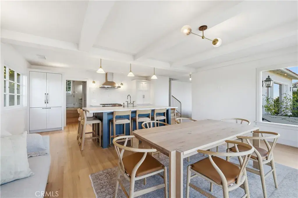 A spacious dining and family room flows seamlessly from the kitchen, with doors opening to an ocean-view balcony. The inviting living room includes a fireplace and opens to an outdoor patio—perfect for entertaining and enjoying the coveted Malaga Cove lifestyle.