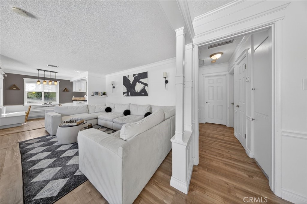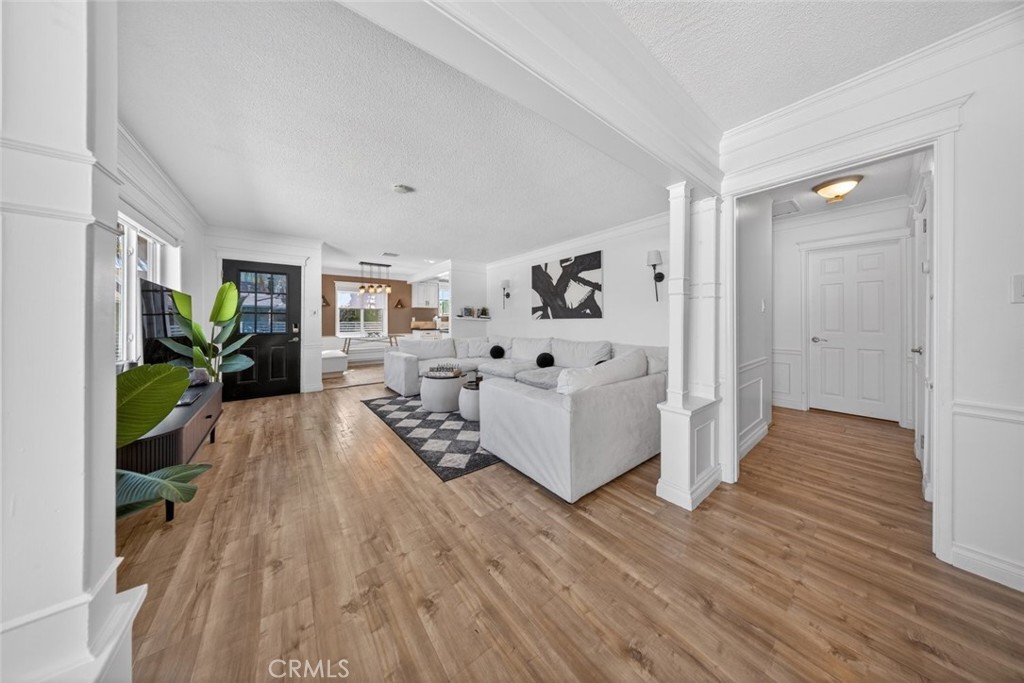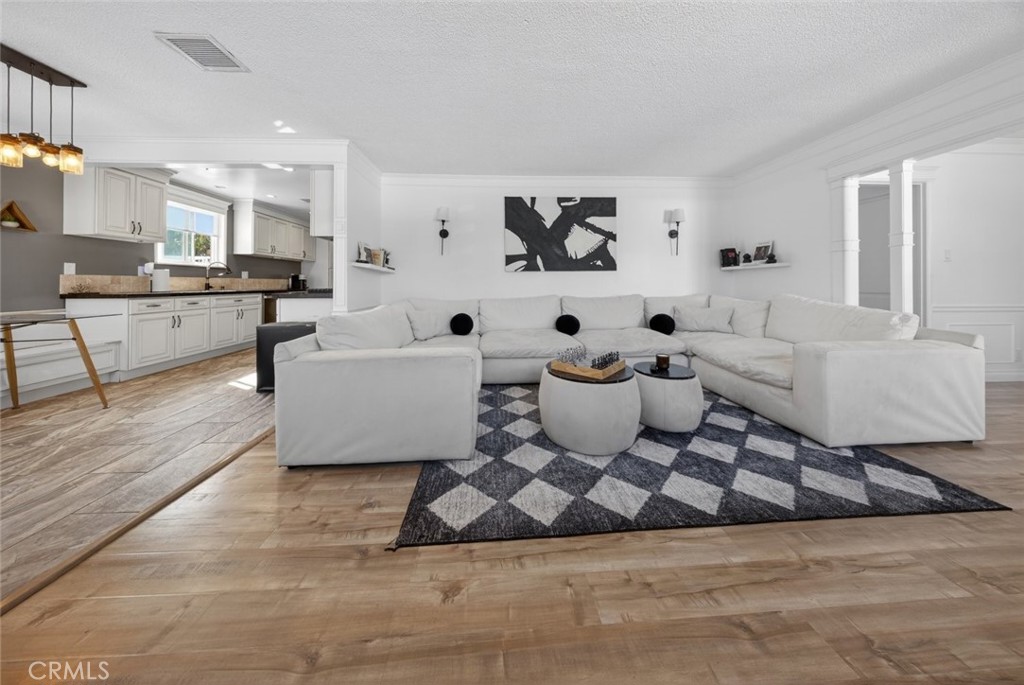 The home features an open floor plan filled with abundant natural sunlight, complemented by upgraded laminate flooring, updated countertops, and attractive cabinetry throughout. The kitchen showcases clean finishes and flows seamlessly into the living and dining areas—perfect for everyday living and entertaining.