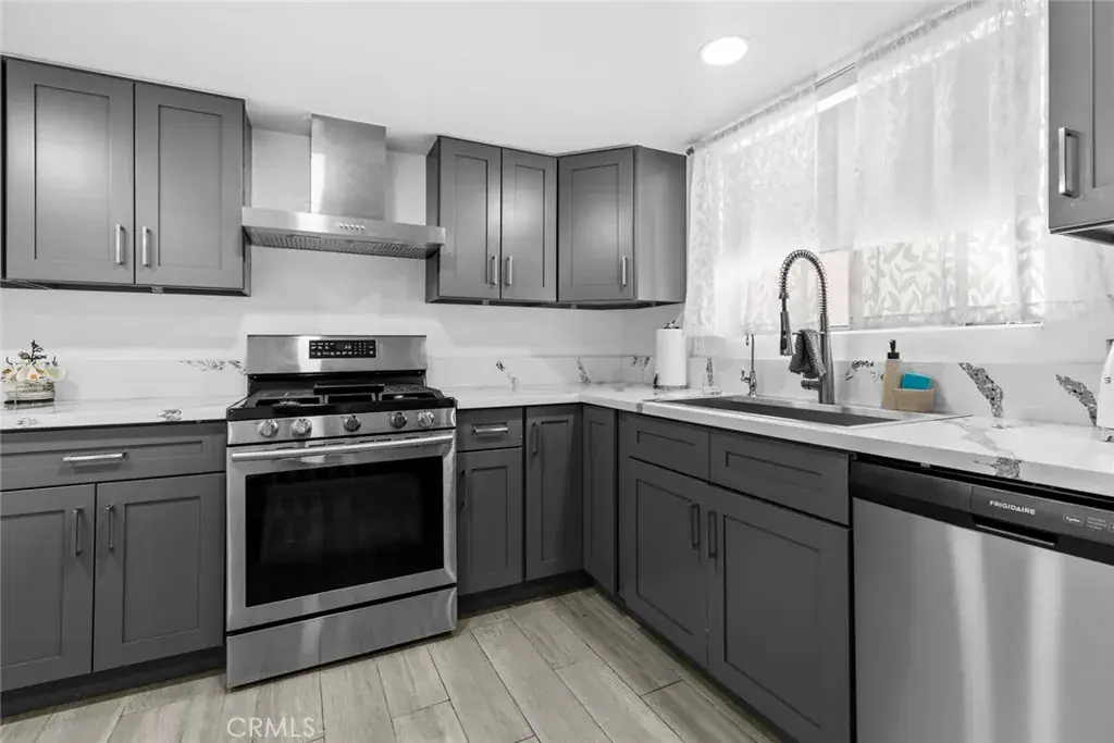 This exceptional HUGE remodeled and spacious corner Town House unit featuring 3 bedrooms, 2.5 bathrooms, and an attached side-by-side 2-car private garage, with approximately 1,971 sqft. Situated at the rear of a fully gated community, this home offers added privacy, quiet, and abundant guest parking behind the gates. The entry level includes a private garage with direct access to a large utility and storage room with full-size laundry hookups. The main floor has a bright, open-concept living area with new luxury vinyl plank flooring, recessed lighting, a fireplace, balcony, powder room, dining area, and built-in bar. The spacious eat-in kitchen features modern cabinetry, stainless steel appliances, and space for a breakfast table. A bonus room on this level offers flexibility as a potential 4th bedroom, office, den, or playroom. Upstairs, the large primary suite includes multiple closets and an remodeled bathroom with dual vanities and a step-in glass shower. Two additional bedrooms and a full hallway bathroom complete the top floor.