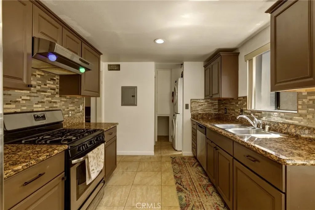 Welcome Home! This beautiful and spacious tri-level condo with attached 2-car garage is located in a gated community. Conveniently situated near freeways for an easy commute. Step into a rare 1,455 square foot of living space, which is in move-in condition. You will find a complementary blend of tile and laminate flooring throughout. The living room, which is on the first floor, has high ceilings with a gorgeous fireplace and direct access to your private patio. The second floor includes the dining room, office nook, kitchen, guest bathroom, and laundry area. The dining area is spacious enough to sit the whole family plus guests, and comes with a chandelier. The family’s cook is going to appreciate the recessed lighting, abundant cabinets, granite countertops, and complementary backsplash. The kitchen also comes with a stainless steel dishwasher and hood range, and has enough space for a breakfast nook. Next to the kitchen is the laundry area with washer and dryer hookups. The 2 bedrooms, each with en-suite bathrooms, are located on the third floor. Both bedrooms are spacious and come with ample closet space. The primary bedroom, which also comes with a large walk-in closet, has vaulted ceilings and enough space for all of your furniture. The primary bathroom has a dual sink, a gorgeous stone shower, and a wash closet. The second bathroom upstairs has a granite counter and a shower with a bathtub. The attached 2-car garage is spacious and has a very rare and massive private storage room. Comes with central air & heat for year-round comfort. The community offers a pool and a jacuzzi for entertainment.