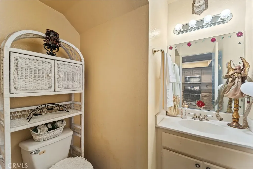 The spacious primary suite comfortably accommodates a king-size bed and includes dual closets with built-in organizers and additional cabinetry. The en-suite bathroom features a seated vanity, ample storage, and an additional nearby storage closet for added convenience.