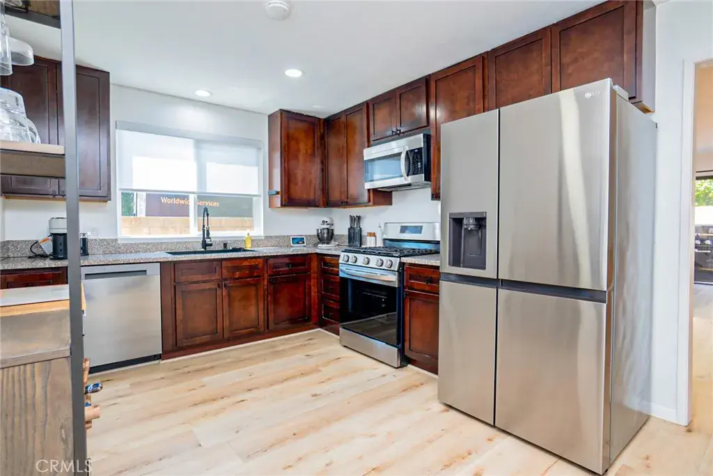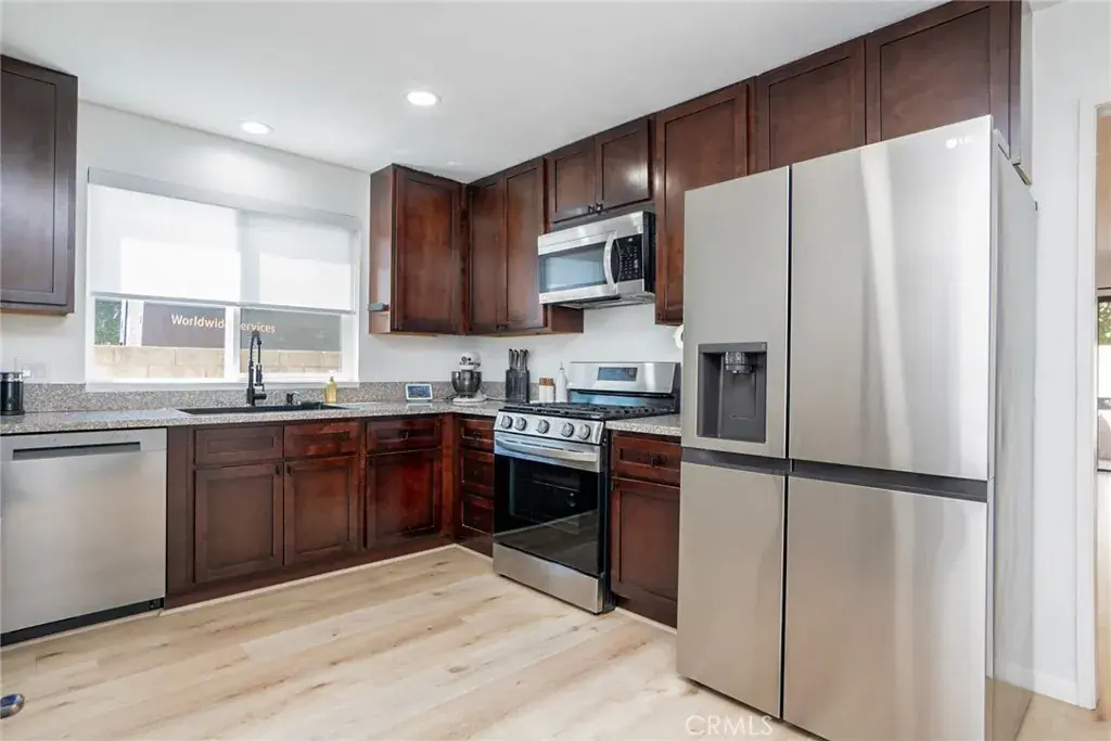 Welcome to Paramount Village, where convenience meets modern living! This beautifully remodeled 3 bedroom, 2.5 bathroom corner unit condo offers 1,308 sq. ft. of comfortable living space with a thoughtful open floor plan. Step inside to find fresh paint, new flooring throughout, and fully renovated bathrooms with a sleek modern design. The spacious downstairs features a large living room that seamlessly flows into the formal dining area, perfect for gatherings and entertaining. The updated kitchen opens to a private patio space, ideal for outdoor dining or relaxing. Upstairs, the primary suite boasts a custom closet organizer, vanity area, and en-suite bathroom, creating a private retreat. Additional bedrooms are generously sized and filled with natural light. Enjoy the convenience of an attached 2-car garage and easy access to community amenities. Perfectly situated just 15 miles from both LAX and Downtown Los Angeles, with quick access to the 91 freeway, this home offers an ideal balance of comfort and connectivity. Don’t miss the opportunity to call this stylish, move-in-ready condo your home!