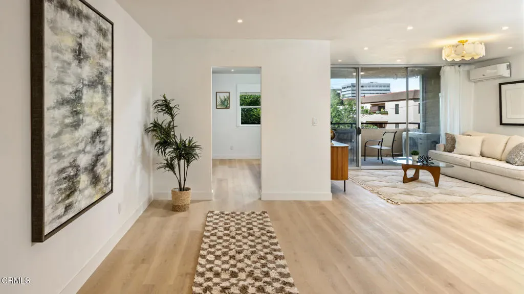 Welcome to this beautifully renovated 2-bedroom, 2-bath condominium on tree-lined Cordova Street in Pasadena, offering charming mountain views and an ideal blend of warmth and modern elegance. The open-concept layout is anchored by French oak-toned flooring and enhanced by thoughtful upgrades and refined details throughout. Both bedrooms are spacious and enjoy mountain views, and a large private balcony extends the living space outdoors.The chef’s kitchen showcases slim Shaker cabinetry, a Calacatta Gold granite countertop, and Samsung Bespoke smart appliances–perfect for everyday living and effortless entertaining.Both bathrooms feature floor-to-ceiling travertine tile, designer limewash paint, floating vanities, backlit mirrors, and smart toilets with control panels. The primary bath includes a soaking tub, while the secondary offers a walk-in shower.Gated building amenities include a pool, BBQ area, and two assigned side-by-side parking spaces. Located just moments from Lake Avenue, Erewhon, Whole Foods, Trader Joe’s, and Pasadena’s premier restaurants and cafes, this turnkey residence delivers elevated living in one of the city’s most desirable neighborhoods.