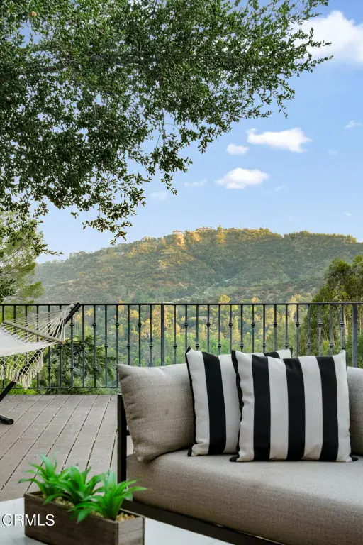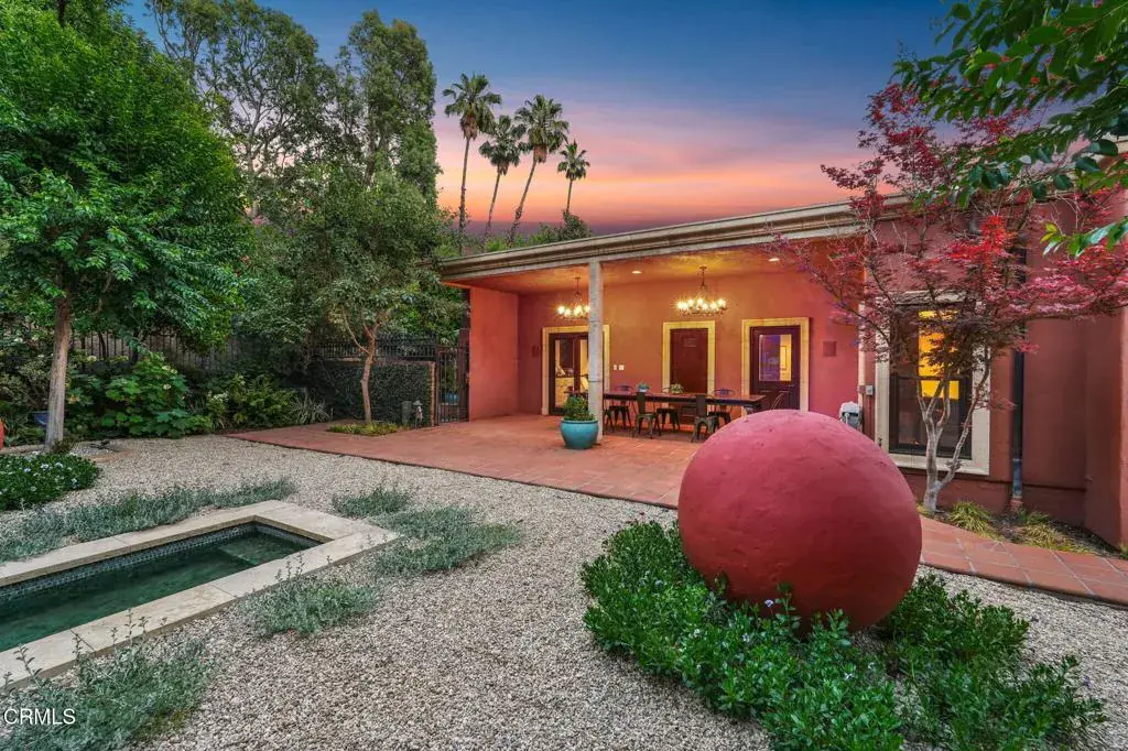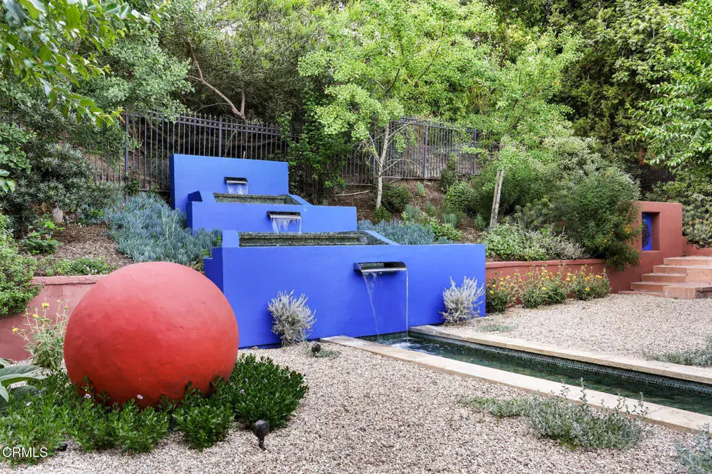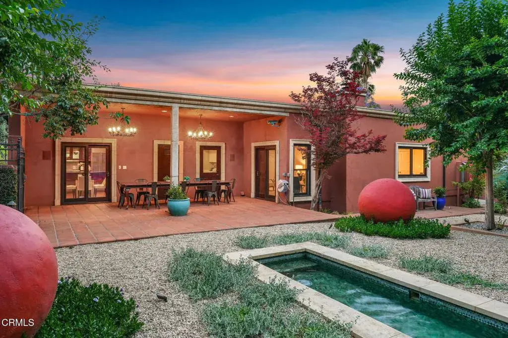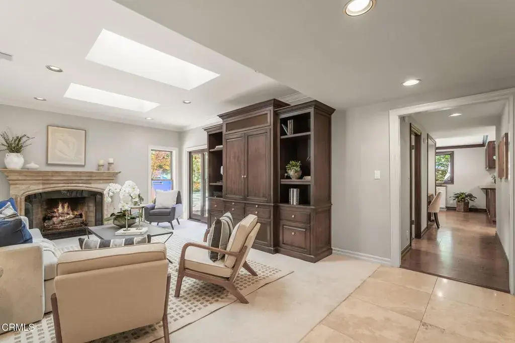 With its stunning architecture, coveted address in Upper Linda Vista, and beautifully-designed outdoor spaces, 1897 Braemar Rd is a secluded Pasadena treasure for those with discerning taste. Designed by esteemed Bel-Air architect Aleck Dugally, whose clients included Sylvester Stallone, Denzel Washington, and Sumner Redstone, this Contemporary Tuscan Villa stands apart with inspired details and a deeply peaceful setting. A grand foyer with a soaring ceiling offers an exquisite welcome. Sunlight pours in from the massive skylight overhead, illuminating the sumptuous travertine floors and offering a prelude to the elegance that awaits within. You’ll instantly appreciate how Dugally’s semi-open concept layout strikes the perfect balance between spaciousness and separation. The foyer adjoins both the dining room on the right and the sunken living room, which rests straight ahead. The latter offers the perfect setting for an intimate concerto or book reading. A chef-worthy kitchen features a cork floor, top-tier German appliances, and gorgeous wood cabinets. Wrapped in windows and boasting a radiant skylight, this dream kitchen overlooks the breakfast area-your sunlit spot for mindful mornings. Casual relaxation is always on offer in the inviting family room, which includes a large fireplace that creates the perfect ambiance during the winter months. Two bedrooms share a dual-vanity hallway bathroom, while the expansive primary suite is privately tucked on its own wing. This serene retreat is complete with a luxurious spa bath, walk-in closet, and French doors opening to the patio. Step out to your secluded outdoor haven shaded by a Walpole pergola and offering stunning views of the lush greenery in the canyon below. As beautiful as the home’s interiors are, its outdoor spaces are equally impressive with expansive patios and decks wrapping all around. The main backyard space showcases modern art in a gorgeous natural setting, with striking abstract sculptures and a statement water feature set amidst lush plantlife. Additional outdoor amenities include a fireplace and numerous lounging areas. The attached two-car garage includes a workshop and an 800-bottle wine cellar to house your collection. A one-of-a-kind residence that imbues your days with beauty and peacefulness, 1897 Braemar is not to be missed.