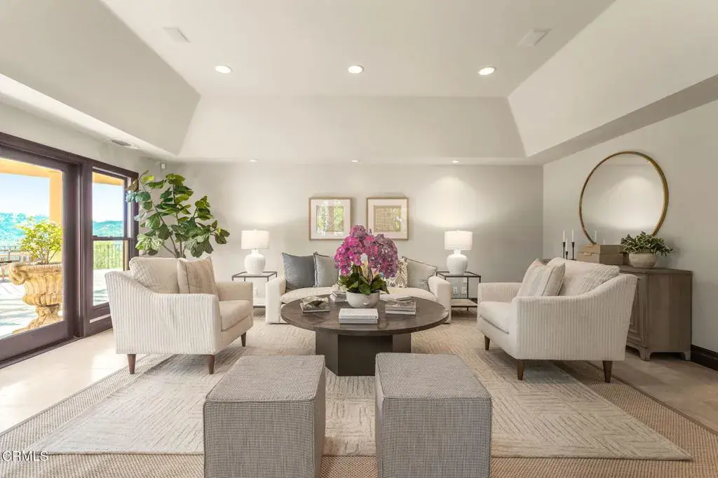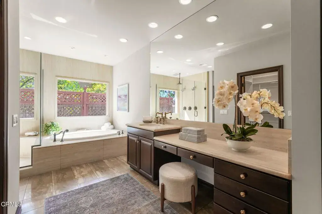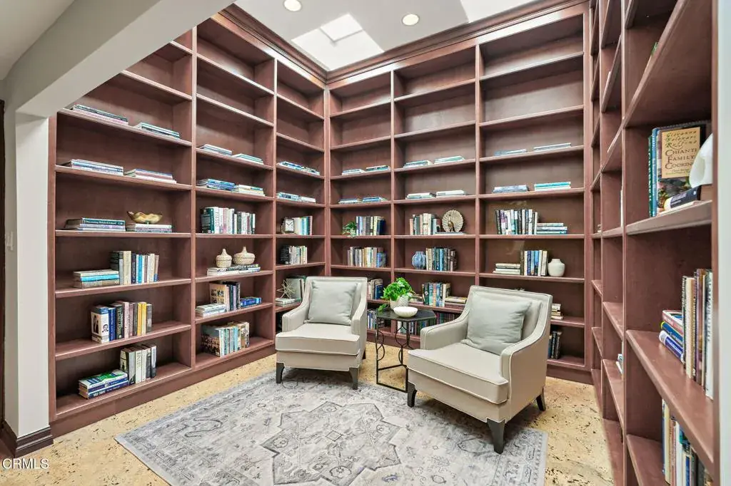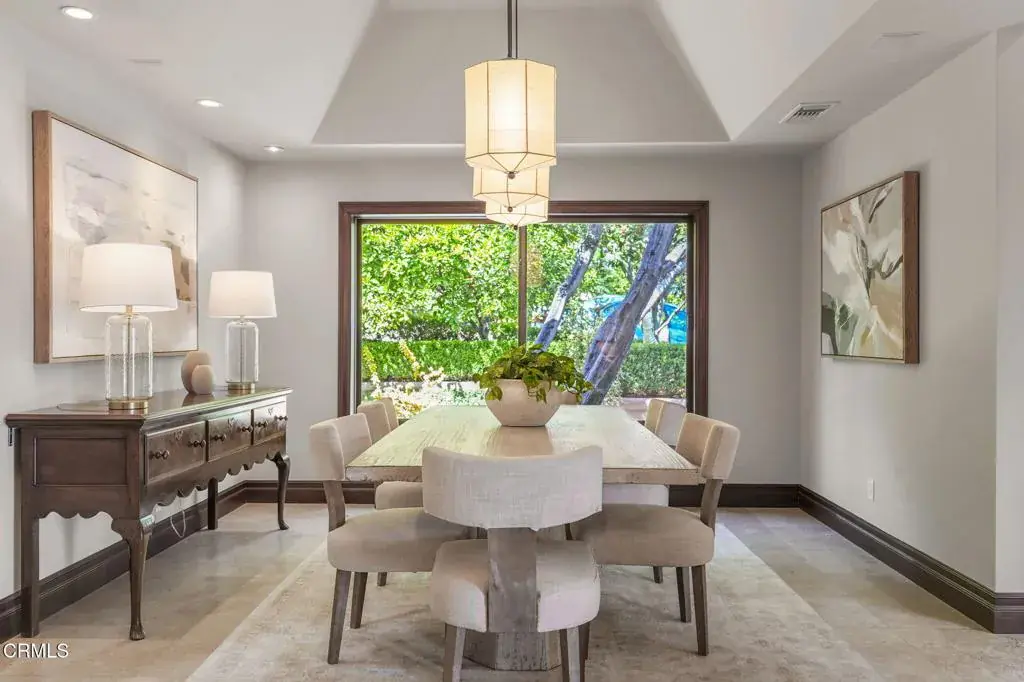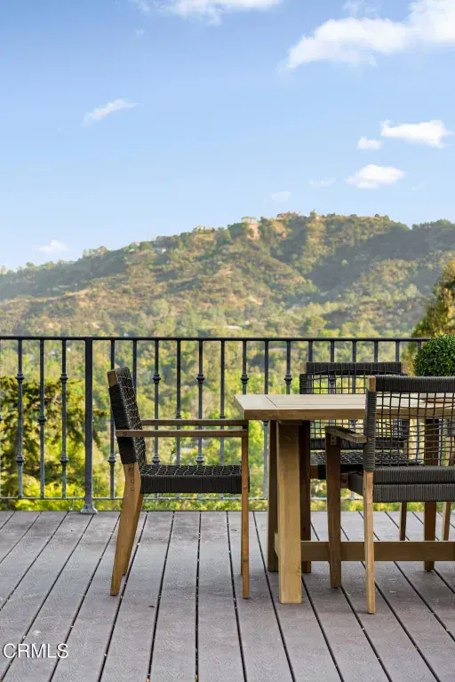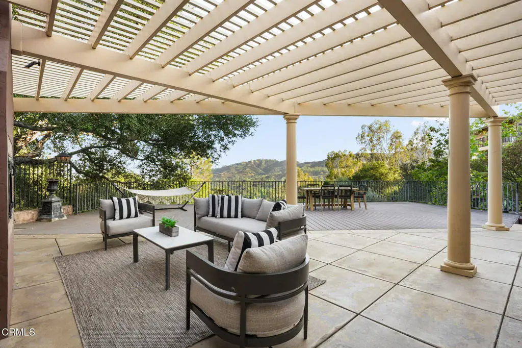 With its stunning architecture, coveted address in Upper Linda Vista, and beautifully-designed outdoor spaces, 1897 Braemar Rd is a secluded Pasadena treasure for those with discerning taste. Designed by esteemed Bel-Air architect Aleck Dugally, whose clients included Sylvester Stallone, Denzel Washington, and Sumner Redstone, this Contemporary Tuscan Villa stands apart with inspired details and a deeply peaceful setting. A grand foyer with a soaring ceiling offers an exquisite welcome. Sunlight pours in from the massive skylight overhead, illuminating the sumptuous travertine floors and offering a prelude to the elegance that awaits within. You’ll instantly appreciate how Dugally’s semi-open concept layout strikes the perfect balance between spaciousness and separation. The foyer adjoins both the dining room on the right and the sunken living room, which rests straight ahead. The latter offers the perfect setting for an intimate concerto or book reading. A chef-worthy kitchen features a cork floor, top-tier German appliances, and gorgeous wood cabinets. Wrapped in windows and boasting a radiant skylight, this dream kitchen overlooks the breakfast area-your sunlit spot for mindful mornings. Casual relaxation is always on offer in the inviting family room, which includes a large fireplace that creates the perfect ambiance during the winter months. Two bedrooms share a dual-vanity hallway bathroom, while the expansive primary suite is privately tucked on its own wing. This serene retreat is complete with a luxurious spa bath, walk-in closet, and French doors opening to the patio. Step out to your secluded outdoor haven shaded by a Walpole pergola and offering stunning views of the lush greenery in the canyon below. As beautiful as the home’s interiors are, its outdoor spaces are equally impressive with expansive patios and decks wrapping all around. The main backyard space showcases modern art in a gorgeous natural setting, with striking abstract sculptures and a statement water feature set amidst lush plantlife. Additional outdoor amenities include a fireplace and numerous lounging areas. The attached two-car garage includes a workshop and an 800-bottle wine cellar to house your collection. A one-of-a-kind residence that imbues your days with beauty and peacefulness, 1897 Braemar is not to be missed.