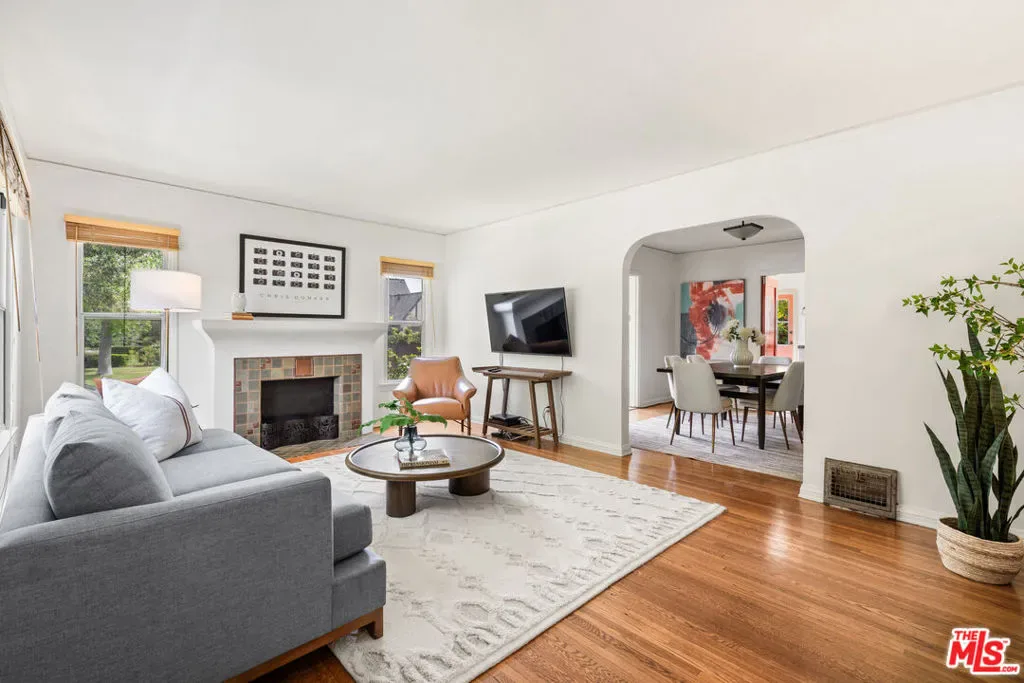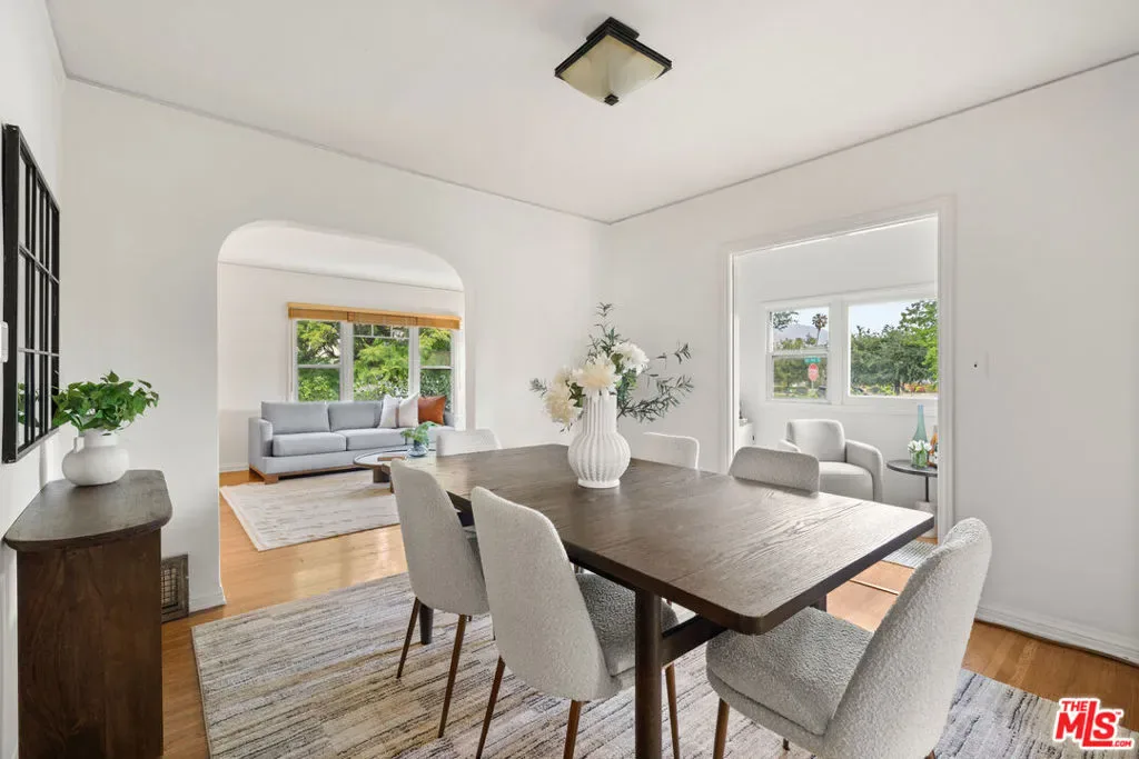 Romantic NE Pasadena home waiting to steal your heart. Sitting on a generous corner lot, the home welcomes you with its charming 1930’s English Country style, like the steep-pitched roof, period gable vents and a sweet front porch. Inside you’ll find a beautiful living room with decorative fireplace, original hardwood floors, and green views outside every window. The formal dining room has plenty of space for sharing meals with friends and family, and opens to a sun room which can serve as a bar, office or play-space. The kitchen is the real showstopper, with its black and white checkerboard floor, sea-foam green cabinets and vintage O’Keefe & Merritt stove. Filled with natural light and gorgeous views of the lush garden outside, this joyful antidote to the drab colorless kitchens makes cooking a delight. Step through the back door to a sunny deck with space for lounging and entertaining, and enjoy oranges and grapefruit from your highly productive trees. The home features 4 good sized bedrooms and 2 bathrooms, providing plenty of room for privacy and guests. The detached garage can potentially be converted to an ADU for additional living space or rental income. With proximity to Victory Park, shops and easy fwy access, you’ll find living here exceptionally attractive and convenient.