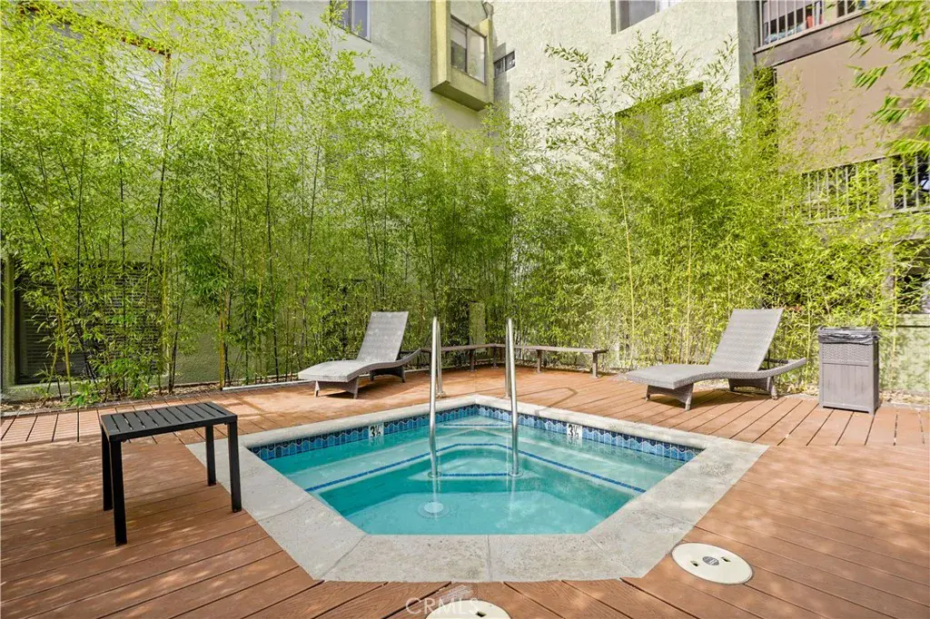 This spacious 2-bedroom + den/office, 2-bath residence offers approximately 1,290 SFT and features a large private patio. The patio offers direct access to the community spa, creating a resort-like setting ideal for indoor-outdoor living and entertaining. The living room features a cozy fireplace, other features include a wet bar, breakfast area, and a flexable floor plan ideal for work-from-home. Resort-style amenities include a pool, spa, gym, and recreation room, two parking spaces, and guest parking. This first-floor unit offers easy access from the garage. Come enjoy the best of Pasadena living!