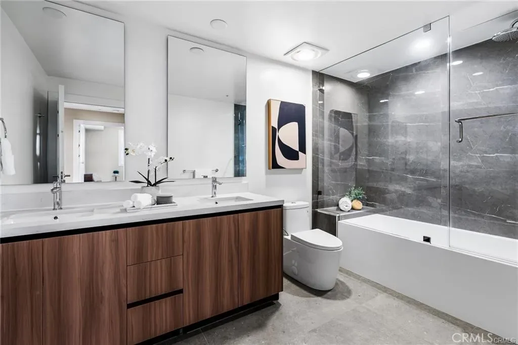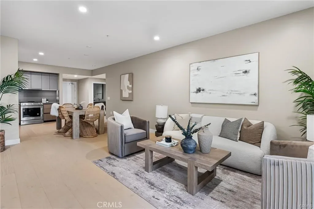 Discover the perfect blend of style and convenience in this comfy 1-bedroom, 1-bath condo. The open layout creates a seamless flow from the contemporary kitchen to the dining and living areas, offering a bright and inviting atmosphere. High-end finishes include Italian-style cabinetry, sleek quartz countertops, and premium appliances, all complemented by elegant wood flooring throughout. The spacious bedroom features a generous walk-in closet, while the well-appointed bathroom boasts dual sinks and a shower-tub combination. Step out to a ~175 SF private balcony overlooking the serene courtyard—ideal for relaxation or entertaining. This community boasts top-tier amenities, including secure FOB and ButterflyMX access, an Amazon Hub locker in the main lobby, and two gated underground parking garage parking spaces. Positioned within walking distance to shopping, dining, entertainment, and the charm of Old Town Pasadena, this home offers modern living in a prime location. Don’t miss out on this exceptional opportunity!