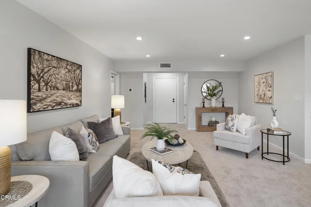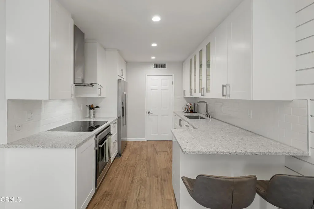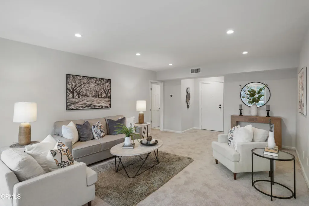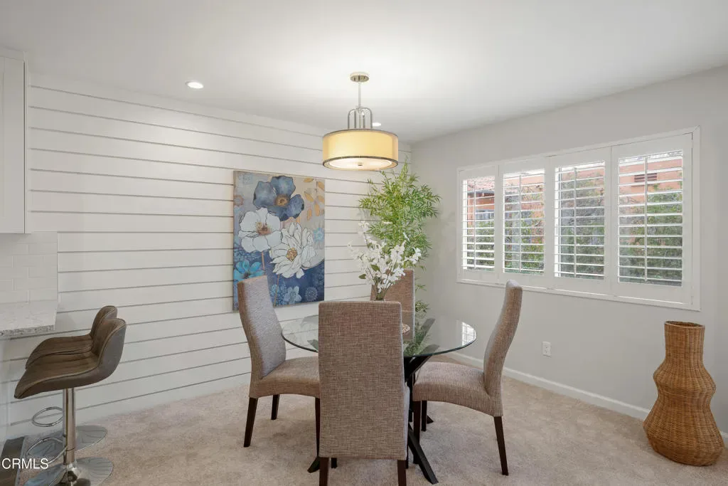 Back on the Market at no fault to the seller…Welcome to Casa Serena, where comfort, style, and Pasadena living come together seamlessly. Come inside this beautifully updated residence and be greeted by an open, light-filled living space featuring recessed lighting and plush new carpeting. A large sliding glass door opens to an expansive private balcony, perfect for morning coffee or evening relaxation, enhanced by elegant wood-louvered shutters that add both character and privacy. The living area flows effortlessly into the dining space, highlighted by a stylish shiplap accent wall that creates a warm and inviting focal point. Just beyond, the thoughtfully remodeled kitchen blends form and function with sleek quartz countertops, shaker-style cabinetry, recessed lighting, and a furniture-front dishwasher designed to disappear into the cabinetry for a clean, modern look. An electric cooktop, range hood, built-in oven, and a generous walk-in pantry with custom shelving complete this well-appointed space. Conveniently located off the entry is a chic guest powder room featuring penny tile flooring, an LED-lit mirror, and additional storage. A hallway closet area with drawers, shelving, and countertop space adds exceptional practicality. Retreat to the expansive bedroom suite, offering new carpeting, recessed lighting, and a custom closet with built-in organizers. The updated ensuite bathroom feels spa-inspired with basket-weave tile flooring, a tub and shower combination enclosed by custom glass doors, a rain showerhead, recessed lighting, and an oversized vanity topped with stone. Casa Serena residents enjoy access to a gated pool and spa, a charming courtyard, and a spacious community laundry room with private storage lockers. Set within a secure building and ideally located near the South Lake District, Old Town Pasadena, Caltech, with convenient access to greater Los Angeles, this turnkey home offers the perfect balance of sophistication, comfort, and location. Experience elevated Pasadena living at Casa Serena.