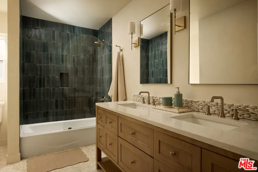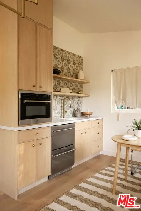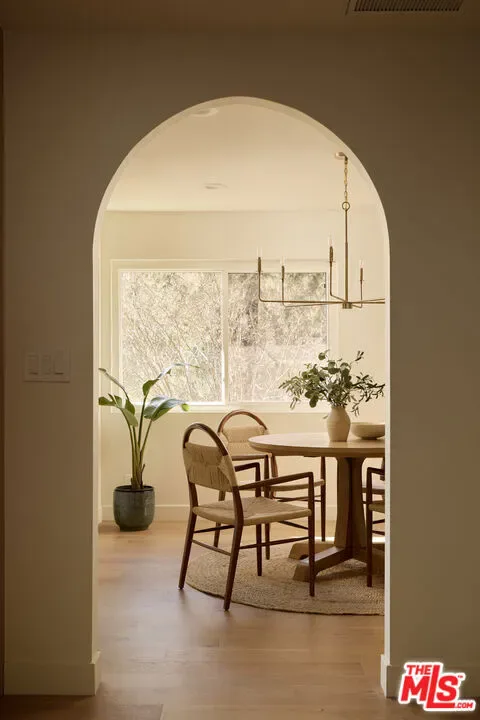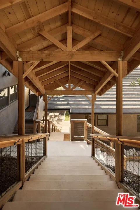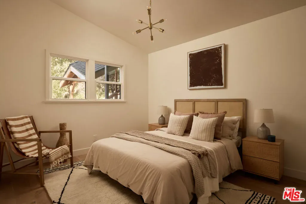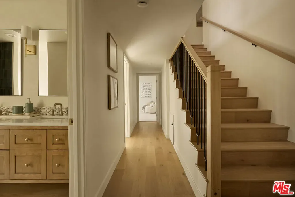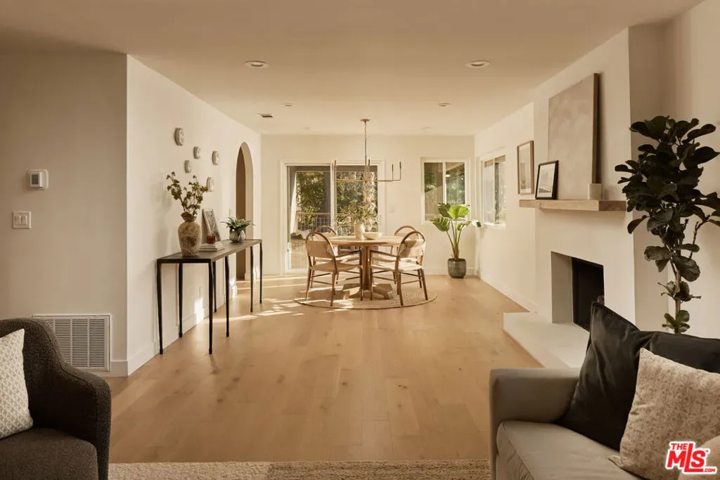 A fully reimagined, multi-level hillside home by Nicole Douglas Designs, defined by craftsmanship, privacy, and its connection to nature. A processional, pavilion-style entry leads through a covered timber passage framed by hand-crafted joinery, descending steps, and filtered light, all signaling a transition into a tranquil retreat. Inside the main house, curved arched doorways and continuous Mullican European White Oak flooring establish a seamless flow between spaces. The kitchen serves as a central gathering point, where materiality and function are thoughtfully designed. A Taj Mahal quartzite island is the focal point, complemented by Wolf and Sub-Zero appliances, custom White Oak Slim Shaker cabinetry, hand-made white oak spice shelves within a carved arched stove hood, integrated vertical wine storage designed for temperature stability, and large windows that bring in abundant natural light. A walk-in pantry is discreetly positioned off the kitchen, providing generous storage and prep capacity. The kitchen opens into the dining area and main living room, where a flame-lit natural gas fireplace finished in Venetian plaster is paired with a solid wood mantel. The primary bedroom is set apart with its own private deck overlooking the grounds. The en-suite bathroom is finished in stone and spa-like tile featuring dual vanities and a glass-enclosed walk-in shower. The lower level includes 3 additional bedrooms, an office, and a flexible space suitable for a media or family room. A lower-level deck extends the living area outward, creating an ideal setting for a wellness or workout space surrounded by nature. A separate guesthouse includes its own kitchenette, living and dining areas, private balcony, and ensuite bedroom, offering flexibility for guests, creative use, or income opportunities. The backyard is designed as a true extension of the home with terraced pathways, multiple seating areas, mature trees, and a grassy lawn area optimal for entertaining. A rare amenity further distinguishes the property: direct private access to Brookside Park, offering additional walking paths, tennis courts, and recreational areas just beyond the property line. Located in one of Pasadena’s most desirable residential pockets, 521 Fremont Drive is moments from the Rose Bowl, Old Town Pasadena, and the best of the city’s culture and dining.