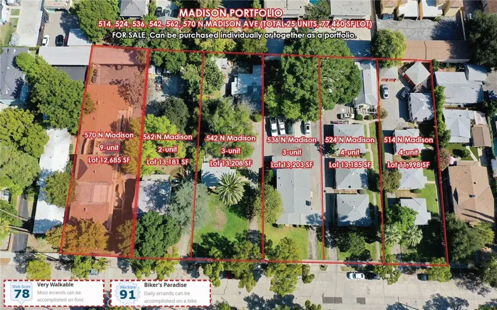 True Value-add 9 units several blocks north of Old Town Pasadena, Excellent Unit Mix, Large 12,685 SF Lot, 9 carport parking, Excellent going-in CAP Rate with High Proforma CAP Rate. 570 N Madison Ave, a prime value add 9-unit apartment in the City of Pasadena. Situated only several blocks north of Old Town Pasadena, 2 blocks west of Los Robles Ave, and just within walking distance of many dining, shopping, and other attractions in Pasadena. It is situated on a quiet residential street surrounded by single family houses. This property is being sold together with 5 adjacent buildings to its south that are own by same seller – can be purchased together or individually (514 N Madison, 526 N Madison, 536 N Madison, 542 N Madison, and 562 N Madison).