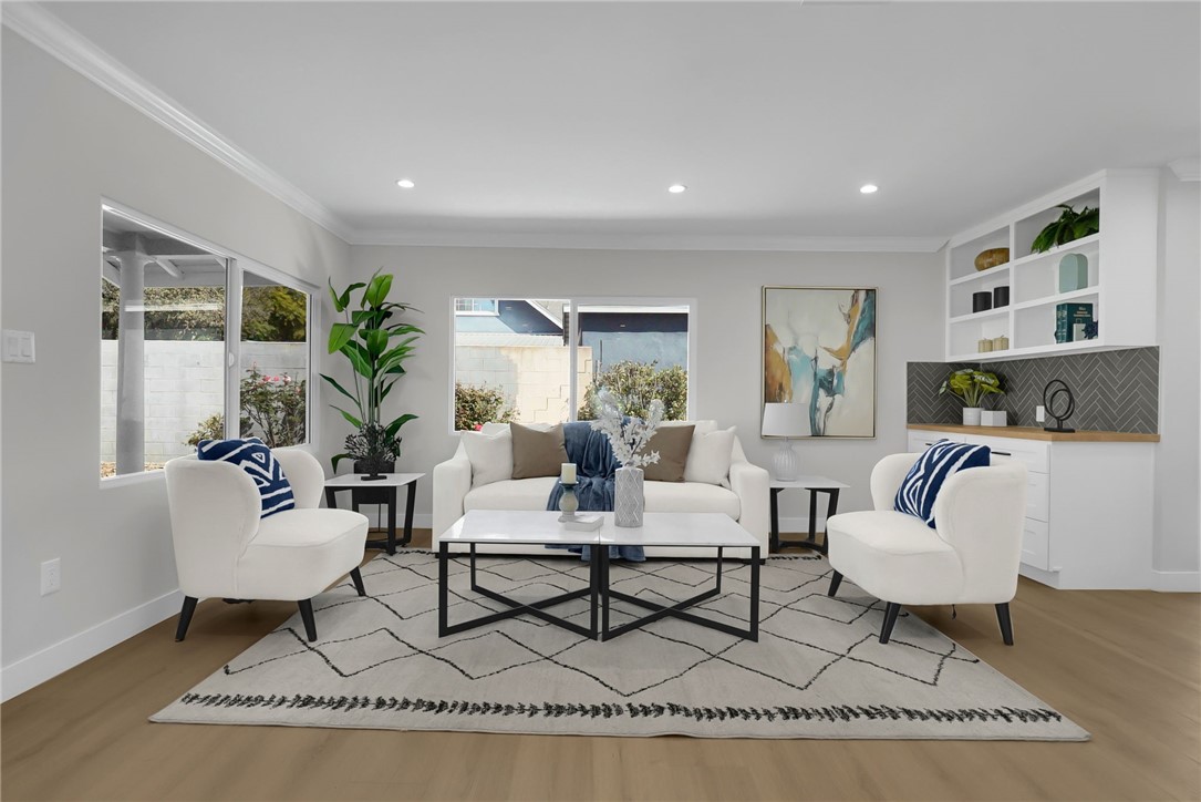 Welcome to this beautifully fully remodeled single-story home offering modern design and comfortable living. This stunning residence features 3 bedrooms and 2 bathrooms with approximately 1,538 sq ft of living space, thoughtfully redesigned with high-quality finishes throughout. Step inside to a bright and open floor plan filled with natural light. The brand-new kitchen is the heart of the home, showcasing sleek cabinetry, quartz countertops, a spacious center island, and stainless-steel appliances—perfect for cooking, entertaining, and everyday living. The primary suite offers a peaceful retreat with a stylishly upgraded bathroom, while the additional bedrooms are well-sized and versatile for family, guests, or a home office. Both bathrooms feature designer tile, modern fixtures, and elegant finishes. Additional upgrades include new flooring, recessed lighting, updated plumbing and electrical, new windows, and contemporary design touches throughout. The home blends modern comfort with timeless style.