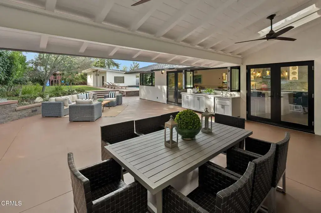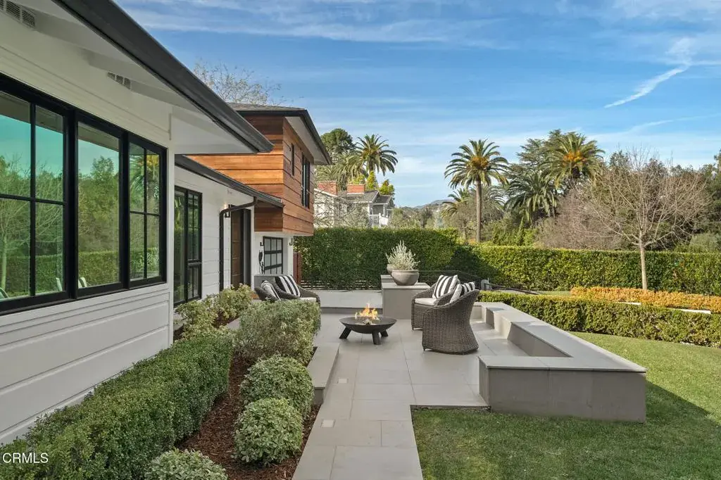 Westside glamour meets the refined elegance of Pasadena’s exclusive San Rafael Heights. Completely reimagined in 2019, 645 South San Rafael Ave is a turnkey luxury home where tech-enhanced lifestyle ease harmonizes with gorgeous natural materials and lush surroundings. Tucked behind tall hedges and a gated entry on a private, corner lot, the home greets you with a stylish facade and meticulously landscaped front yard. Inside, natural light pours into the living room from a massive picture window and collapsible glass doors, which open to the expansive rear patio. Offering a fantastic indoor-outdoor flow, this defining entertainment area allows guests to mingle with ease. In the dining room, an elegant wine display makes selecting the evening’s bottle a special ritual while the great room includes a dream-kitchen outfitted with Thermador and Viking appliances, custom cabinetry, and a 13-ft porcelain-topped waterfall island worthy of a meal cooked by Nancy Silverton herself. Sunlight floods through the overhead skylights and the attached family room invites loved ones to gather here in the heart of the home. The luxurious primary suite, privately tucked on its own floor, features gorgeous wood paneling, a cavernous walk-in closet, and picturesque views. With a lavish, marble-wrapped ensuite including a soaking tub, heated floors, and a steam shower, you’ll treasure this secluded sanctuary. A second bedroom suite, equally grand, is tucked down a first floor hallway along with two additional bedrooms and a full-sized hall bath. A fifth bedroom, near the kitchen, is perfect as service quarters or an office. The grounds include an exceptionally private backyard that offers a large, heated patio with outdoor kitchen for al fresco meals year round, a spacious grassy lawn, and a shimmering pool with spa. A fully permitted ADU currently serves as a sound-proof media room for immersive movie nights. Updated with amazing tech, including Samsung biometric entry, security cameras, EV chargers, surround sound and much more, 645 S San Rafael Ave leaves nothing to be desired. Your next amazing chapter awaits at this exquisite home where elegance, luxury, and ease imbue each day.