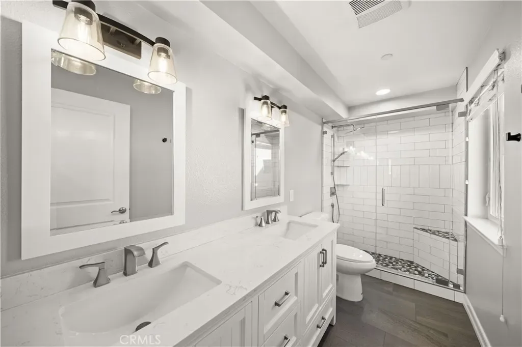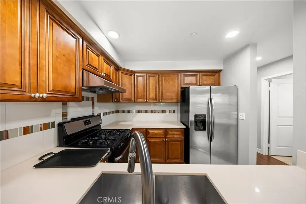 This newer three-level townhome is located on a quiet, tree-lined street within a gated community in Pasadena, offering both privacy and everyday convenience. Pasadena City College is just around the corner, with Caltech only minutes away, and the home is surrounded by shopping plazas, dining options, and daily essentials. The property features five well-proportioned bedrooms and three and a half bathrooms, with a bright, open floor plan that feels comfortable and practical. The kitchen is equipped with granite countertops, a breakfast bar, and wood cabinetry, and flows easily into the living and dining areas, making it well suited for both everyday living and entertaining. Additional features include recessed lighting, Milgard windows, sound-reducing Gypcrete flooring, and a built-in security system. The second level includes the primary suite along with two additional bedrooms, while the third floor offers two more rooms that can be used as guest bedrooms, home offices, or flexible living space. The home also includes a private backyard, a two-car attached garage, Tesla charger, and a tankless water heater. Conveniently located just minutes from Old Town Pasadena, the Metro Link Station, and approximately a five-minute drive to the Huntington Library and Gardens, this well-maintained community offers an ideal Pasadena location.