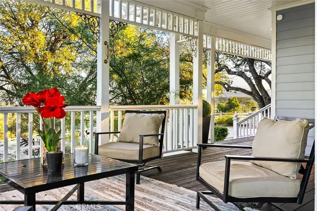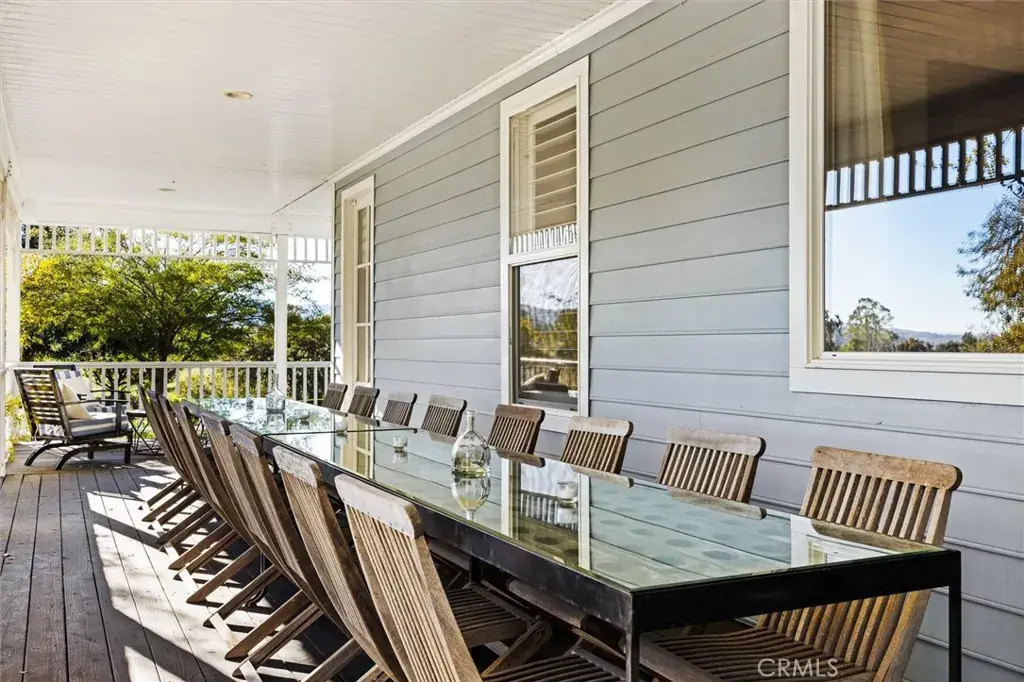 Surrounded by a park-like landscape of 121 mature oak trees, this exceptional 3,467 sq. ft. Australian Queenslander-style residence sits on more than nine stunning acres overlooking the Santa Lucia Mountains, rolling hills, and Paso Robles wine country. Offering rare privacy while remaining just 3.5 miles from downtown Paso Robles, minutes from the 101 freeway, and 25 minutes from the beaches, the estate delivers a lifestyle that feels real, grounded, and deeply connected to the land—perfect for morning coffee on the veranda, exploring the property, or envisioning space for horses and future outdoor uses. A circular driveway framed by towering oaks and a custom fountain creates a memorable arrival, leading to approximately 2,300 sq. ft. of covered veranda ideally positioned for watching breathtaking sunrises and unforgettable sunsets. Inside, the home features repurposed wood flooring, 8-inch baseboards, and 10-foot ceilings, creating a warm, refined atmosphere filled with natural light and authentic character. The grand living room opens through three sets of paned glass doors to peaceful oak-filled views. while a spectacular 2,500-bottle walnut wine room and adjacent study elevate both entertaining and daily living. The chef’s kitchen—anchored by birch cabinetry, walnut/marble/granite countertops, a Sub-Zero refrigerator, and a Viking range and hood—flows seamlessly to the dining room and expansive veranda, making every meal part of the wine-country lifestyle. The private owner’s suite features a cozy fireplace, vinyl plank ceiling detail, 12-inch crown molding, and a spa-inspired bath with travertine finishes, a jetted soaking tub, and a generous walk-in closet. A separate guest wing offers three bedrooms, a central bonus room, and a Jack-and-Jill bath, ideal for extended family, guests, or vacation-rental income. With usable land, equestrian potential, and endless lifestyle possibilities—combined with a fully turnkey, high-demand dog boarding business on-site included in the purchase price—this property is as functional as it is beautiful, creating one of the Central Coast’s most extraordinary residential and income-producing estates.