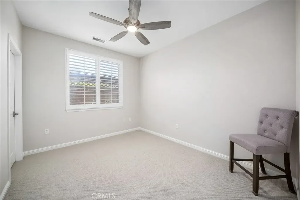 The spacious primary suite serves as a peaceful retreat, featuring a private sliding glass door that opens to a charming, low-maintenance backyard and screened porch. The porch is equipped with motorized track-guided shades and new outdoor ceiling fans, creating a comfortable space to enjoy the surroundings year-round. A well-appointed guest bedroom and a versatile third room provide flexibility for an office or additional guest accommodations.