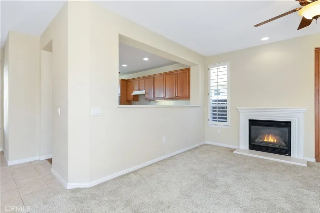 The kitchen features beautiful engineered-wood flooring, solid-surface countertops, under-cabinet lighting, and a newer stainless-steel oven and microwave combination. A charming breakfast nook provides a lovely window view of the greenbelt. The living room offers warmth and ambiance with a gas fireplace that lights instantly with the flip of a switch.