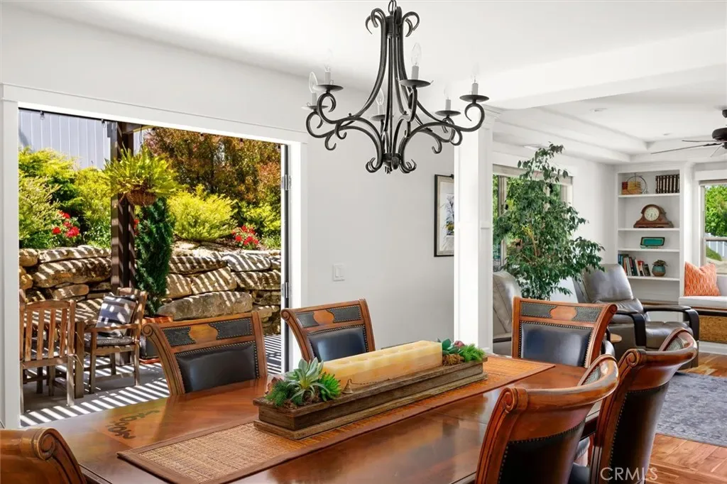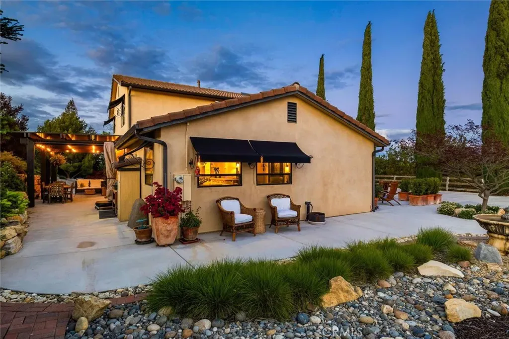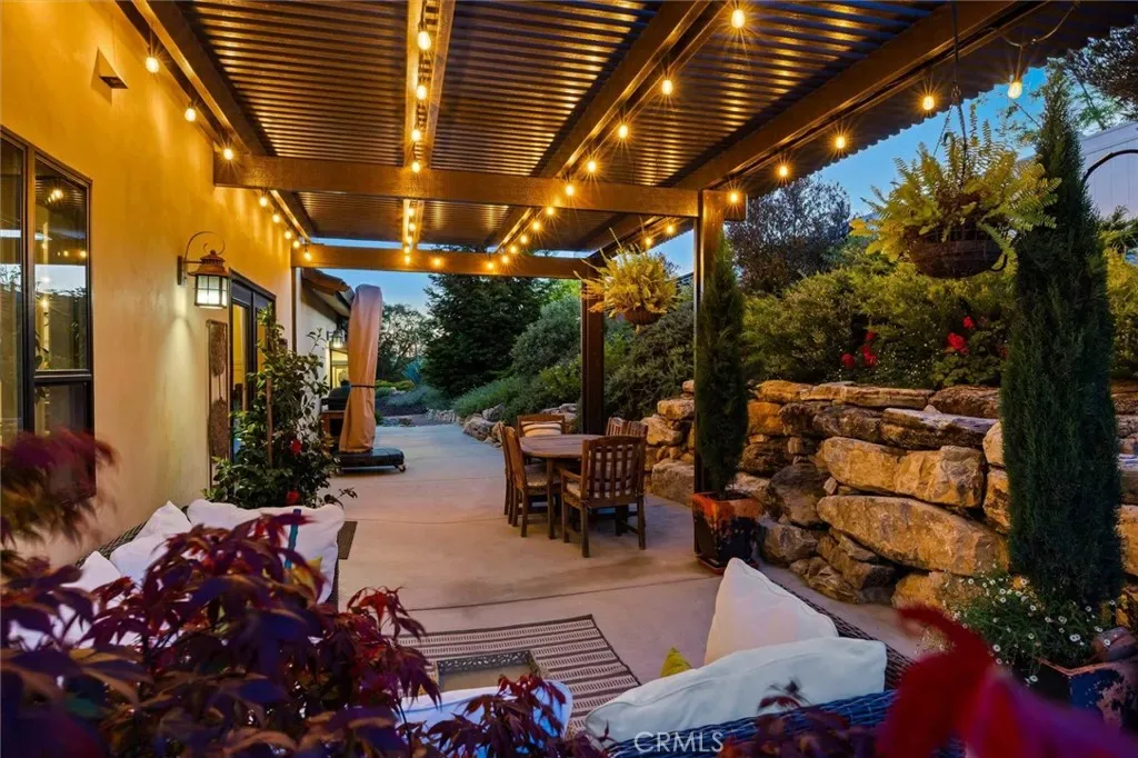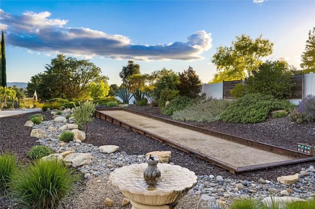 The property itself is a slice of paradise. Thoughtfully landscaped and designed for both relaxation and entertainment, the property offers abundant space to gather and unwind. Enjoy a quiet sunset, or host lively evenings with BBQ, bocce ball, and horseshoes. The enclosed vegetable garden provides an opportunity to cultivate your green thumb and collect fresh eggs from your own chicken coop. A custom pergola, automatic sun shades, and bistro lights on the back patio provide the perfect place to enjoy those North County evenings.