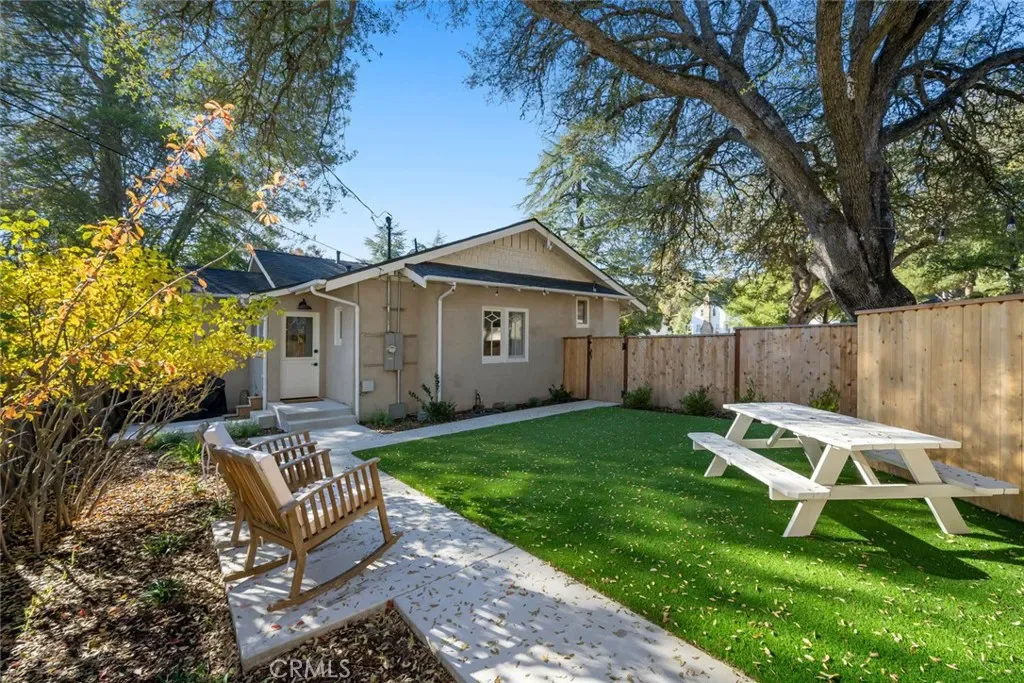 Located in the highly sought-after Downtown West Paso Robles neighborhood, this beautifully reimagined single-level home blends original character with modern luxury. The 1,305 square foot main residence offers 3 bedrooms and 2 bathrooms, while the newly added permitted 273 square foot ADU studio provides a full kitchen, bathroom, wood floors, custom shades, and TV-wall hookups—ideal for guests, rental income, or multi-generational living. Inside the main home you’ll find original hardwood floors, wood-burning fireplace, and spacious bedrooms—each large enough to accommodate a king-size bed. A new clawfoot tub, master designer wallpaper, and indoor laundry add comfort and style. The home is outfitted with WiFi-enabled light switches, AC and heating, owned soft-water system, and tankless water heater. The gourmet kitchen features Wolf range, quartzite countertops, custom cabinetry, Thermador refrigerator, Waterstone faucets, and a built-in wine fridge capable of holding up to 160 bottles. The included LG washer and dryer make this property truly move-in ready. Curtains throughout the home will stay. Major upgrades include a new roof, new plumbing, new electrical, and a reinforced foundation, while maintaining the charm of the original windows, floors, and doors. Both front and back entries feature charming Dutch doors. Outside, enjoy a quiet street setting with fenced yard, turf, and a welcoming gazebo—perfect for entertaining. High-end updates, thoughtful finishes, and a downtown-close location make this an exceptional West Paso opportunity. Completely remodeled with every detail considered, this property offers convenience, charm, and luxury all in one.