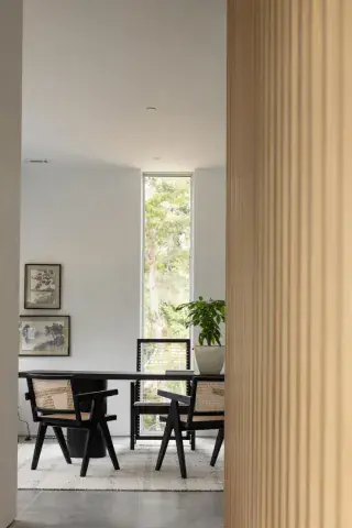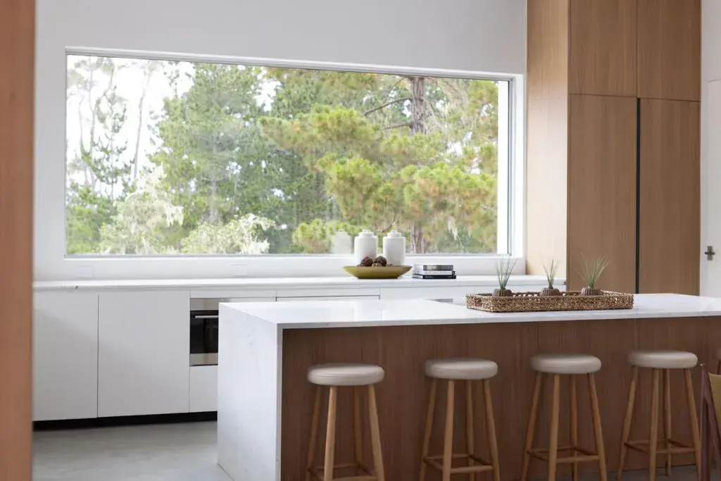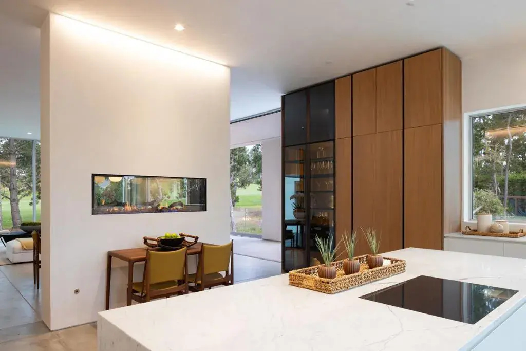 With sweeping views of Spyglass Hills 11th fairway and filtered ocean vistas, the Waterbridge House is an extraordinary Scandinavian-Japanese minimalist estate. This newly constructed compound is comprised of the stunning main house, a private ADU, and a Tea House (Guest House) floating on water. The striking architecture embraces intentional simplicity, blending natural elements with modern form. Two architectural axes, interior and exterior, guide you through spaces that reveal and conceal, including the “Waterbridge,” a glazed walkway over a tranquil pond. The sculptural Cloud Steps lead to a light-filled interior where polished concrete floors, Western floor-to-ceiling windows, Italian concealed Infinity doors, and Poliform cabinetry define quiet luxury. Sustainability meets sophistication with triple-glazed windows, radiant heat, and an automated energy recovery system. From Sub-Zero, Wolf, and Miele appliances to Italian Flos lighting and Simply White plaster walls, every detail reflects enduring craftsmanship and environmental mindfulness. Located in the heart of Pebble Beach near The Lodge and by the Spyglass Club House, Waterbridge House is a half mile to the beach and a short drive from all the wonderful amenities of Carmel, Big Sur, and the Monterey Peninsula.