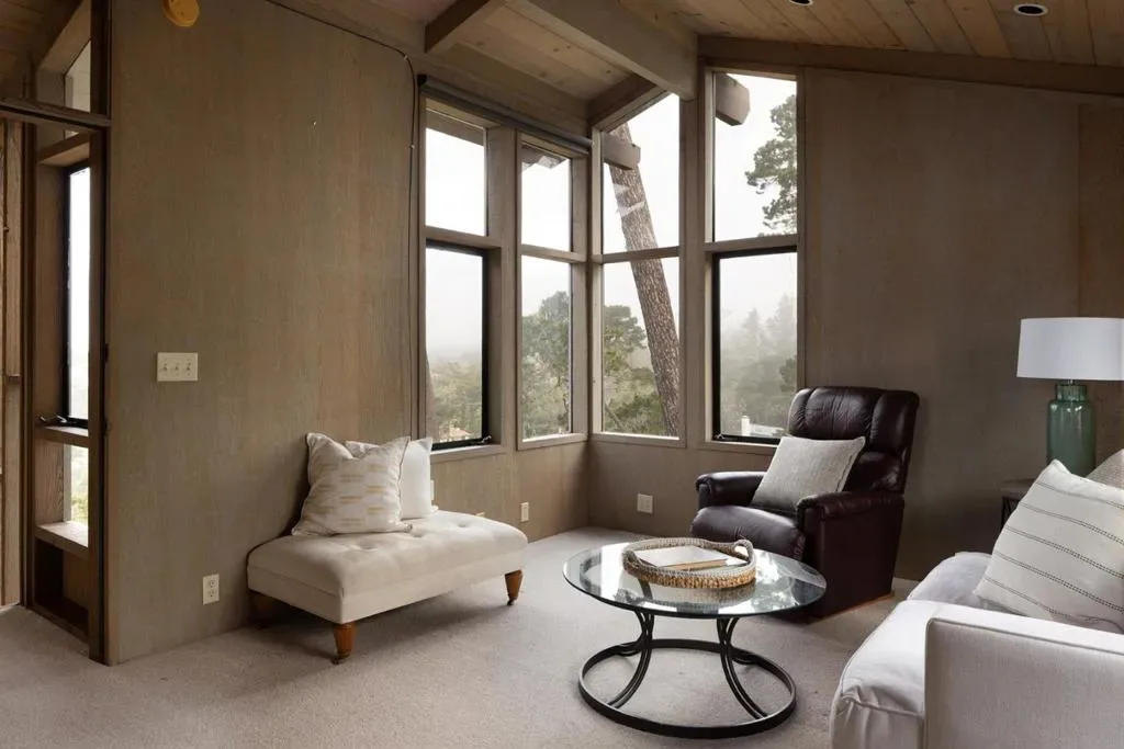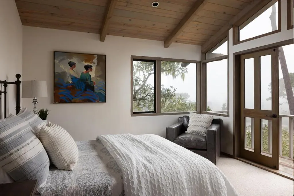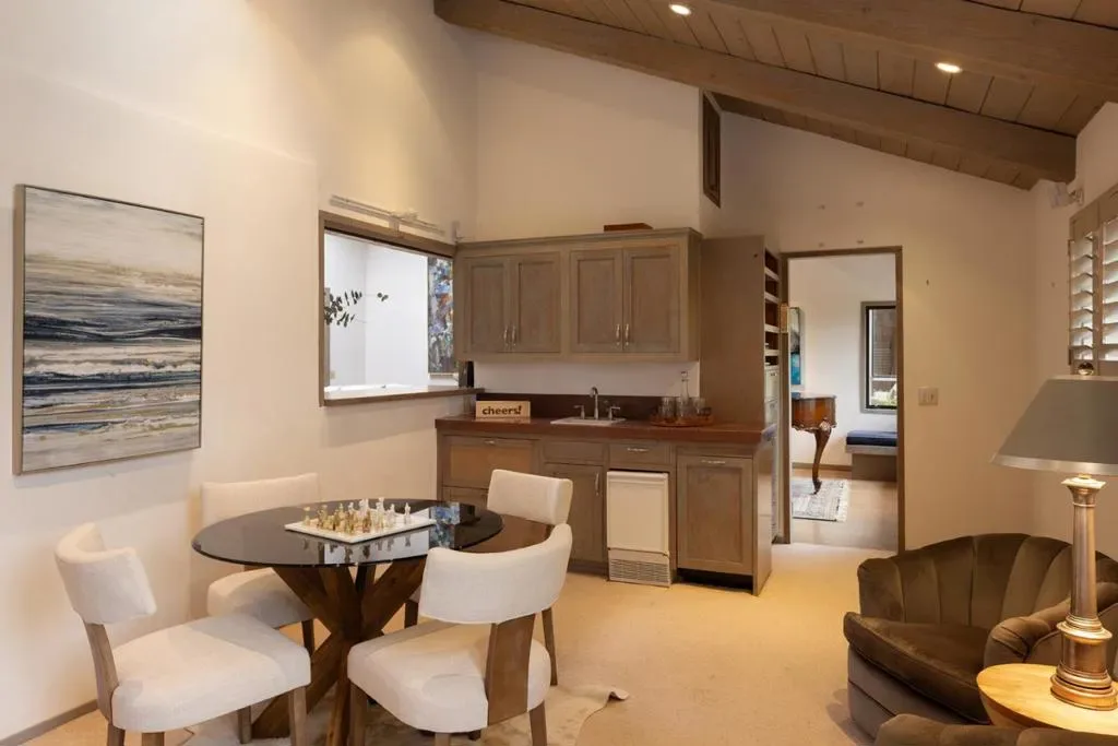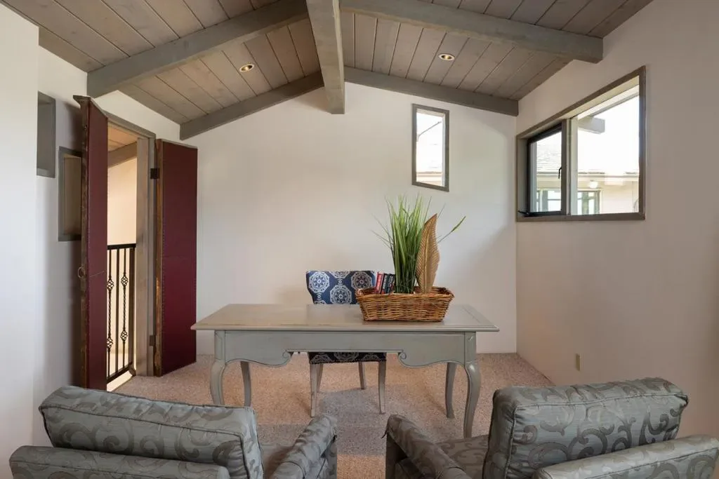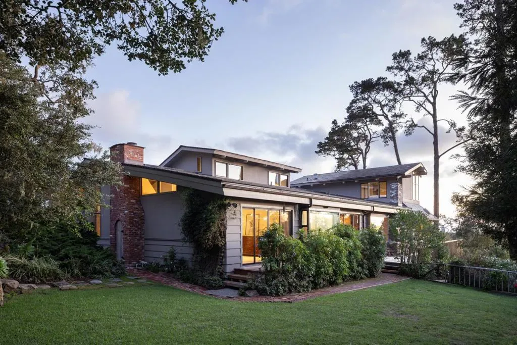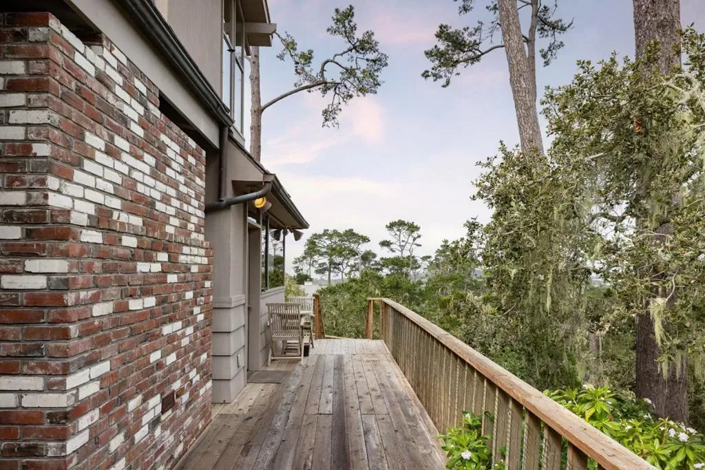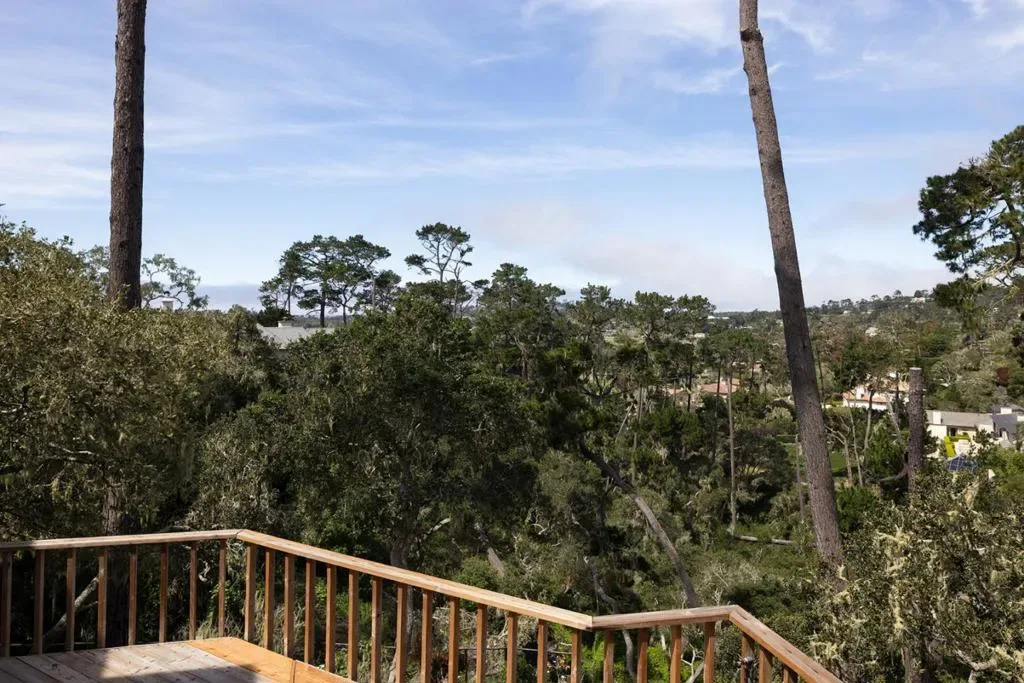 Nestled in a prime Pebble Beach location near The Lodge and Stillwater Cove, this stunning estate within an exclusive gated community offers privacy and natural beauty. Set on 1.35 acres, the 4,423 sq.ft. residence features 4 bedrooms and 5.5 baths, showcasing truly California architecture style with open beam ceilings, skylights, natural wood finishes, and abundant windows that fill the home with light and frame serene forested views. A charming brick courtyard leads to a beautiful entry, opening to a spacious living room that flows seamlessly into the dining area and kitchen with bar seating, ideal for everyday living and entertaining. A sitting room with wet bar and a private office with built-ins and a full bath offer versatile spaces suited for entertaining, work, or guest accommodations. The expansive primary suite offers a fireplace, sitting area, spa-like bath, and a unique loft office with a hidden half bath through armoire doors. Guest bedrooms, including one with a kitchenette, enjoy peaceful forest views. Expansive decks and manicured lawn grounds invite outdoor living, capturing partial views of Pebble Beach Golf Course, Pescadero Point, and Stillwater Cove beyond a tranquil wooded canyon. A 2-car attached garage completes this exceptional Pebble Beach retreat.