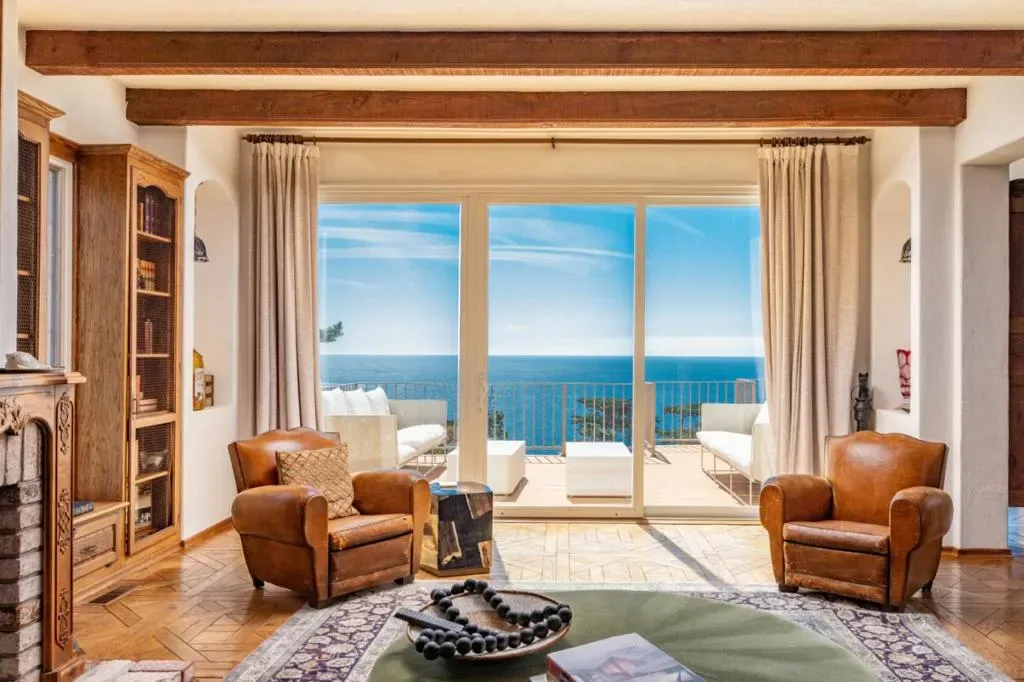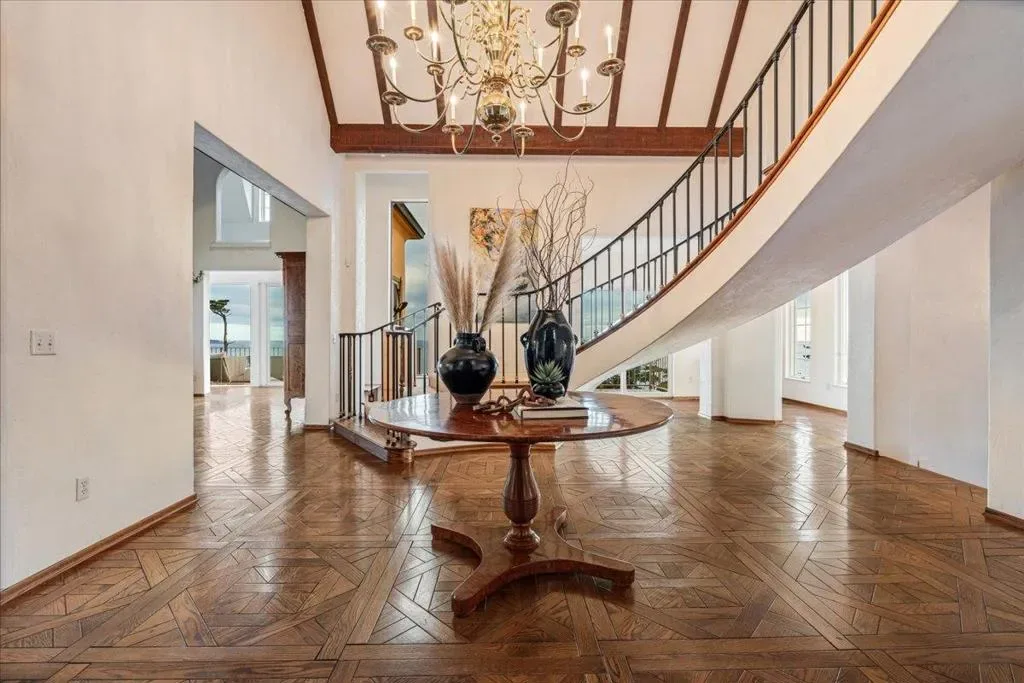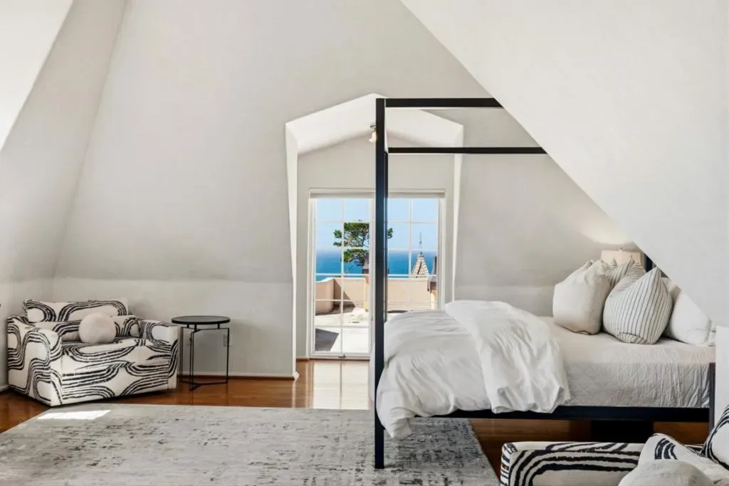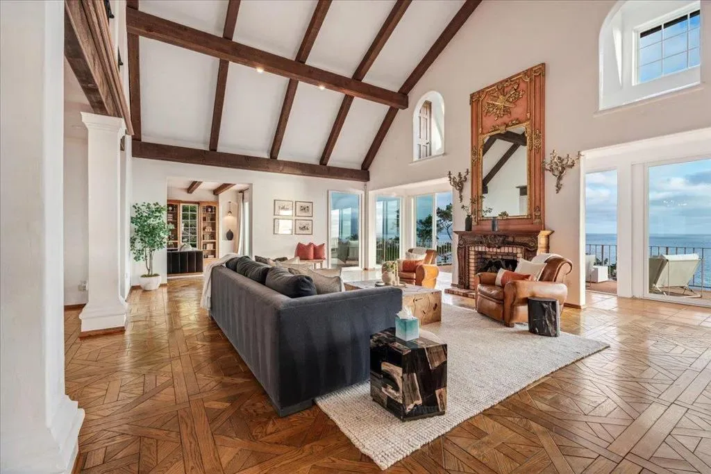 Cantilevered balconies extend over a canopy of cypress trees, revealing unbroken views of Point Lobos. The sea appears as an infinite sheet of white light, the sun’s rays refracting through a fine mist at the water’s edge. A French chateau on a private street with only four homes, this Pebble Beach residence spans nearly three acres, connecting Ballantrae to the lower gate of 17 Mile Drive. A castle-tower guest house feels transported from a storybook, while each room of the main house reflects genuine Old World sensibility. In the kitchen, exposed dark wood ceiling beams and Saltillo terracotta flooring frame ivory cabinetry, premium appliances, and a La Cornue range. In the dining room, diamond-paned windows with beveled glass cast shimmering waves of light across the table. Once dinner guests disperse and the entire house bathes in a warm amber glow, retreat to an intimate living room where bookcases house cherished volumes behind wire-mesh cabinets flanking a flickering fireplace. After nightfall, on your way to a moonlit soak in the outdoor hot tub, pass through a solarium where classical columns surround an ancient rust-hued rock. Breathing in its earthy scent while the ocean roars endlessly below, you’ll smile to yourself at this special symphony of landscape and artistry.
