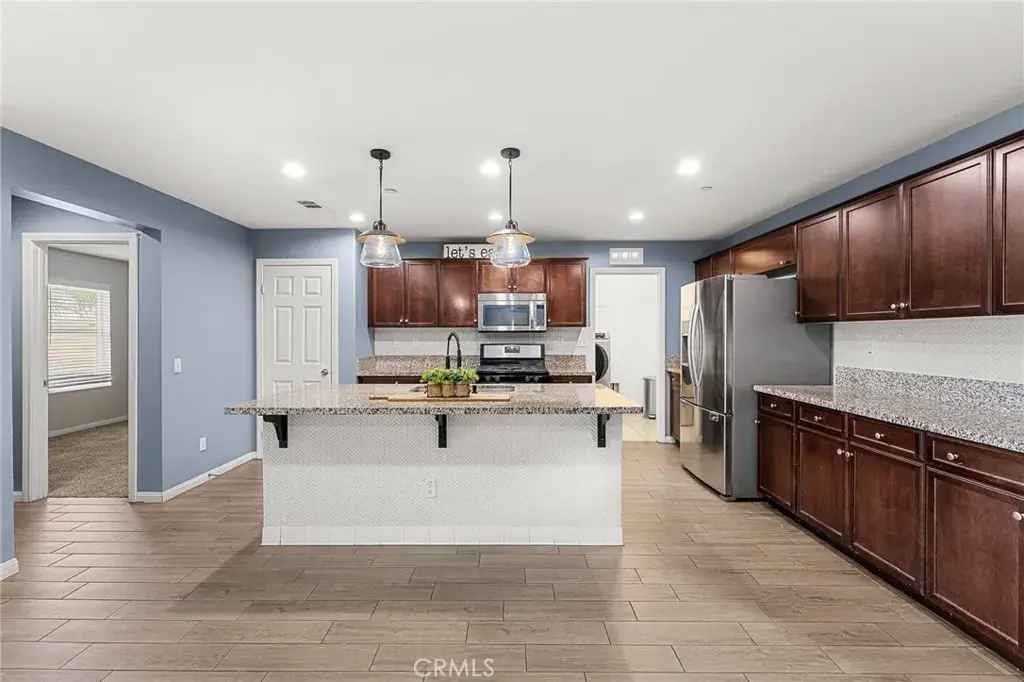 OPEN HOUSE 2/7/2026, 11AM-2PM!! Welcome to this MOVE IN READY home located in a no HOA community located near local freeway access. This property offers 5 bedrooms, 3.5 bathrooms PLUS A LOFT. The downstairs bedroom is a JUNIOR suite with its own bathroom! The backyard is equipped with low maintenance artificial grass and a nice sized patio cover, the front yard has a large driveway with the possibility of RV parking! Open concept kitchen is completed with granite countertops, and a subtle white subway tile backsplash and a good sized island and pendant lighting. This home has upgraded “wood-like” tile flooring on the main level and NEW carpet throughout the rest of the home. On the first floor you will find the first of five bedrooms, upstairs there is a loft for an additional living space, space for kids,or what have you. Did I mention the View? NO NEIGHBOR BEHIND, which offers privacy and serenity. This home also has PAID OFF SOLAR!