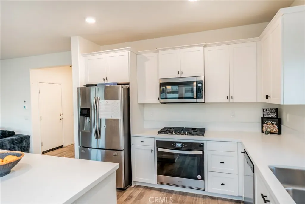 Gorgeous DR Horton home built in 2024 featuring 4 spacious bedrooms, 2.75 bathrooms just waiting for your family to come home! Home features a beautiful, nearly-new kitchen with Whirlpool, stainless steel 4 burner cooktop, oven, microwave, dishwasher, Blanco Tiza Quartz countertops, large island, and pantry closet. Kitchen opens into dining area and living room, perfect for entertaining family and friends. Downstairs has 1 bedroom perfect for guests/in-laws/office and full bathroom. Huge upstairs loft/family room, full hallway bathroom, with 3 remaining bedrooms, including the primary bedroom suite. A bonus is the direct access two car garage already pre-wired for an electric car. This home is conveniently located near shopping, restaurants, walking distance to Orange Vista High School, and nearby Lake Perris State Park, and 215 Freeway access. Hurry and come see this beauty…she won’t last on the market long!
