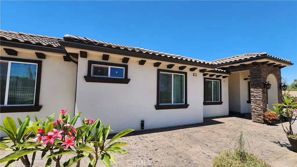 For Sale. This home is almost new, was built in 2022. Beautiful rural setting with almost 1.5 acres of usable land. This home features 5 spacious bedrooms and 3 Full Bathrooms. 10 foot ceilings throughout the home. Huge main suite with a private office, large walk in closet and very elegant bathroom with dual showers and custom tile work and glass enclosures. The kitchen has lots of storage, custom cabinets with wine bottles storage, a center island with quartz countertops, built in microwave, you will love it. Open concept. Large Living Room and Family Room as well. Dining area. Large Pantry. Custom front iron door. Marble tile floors throughout most of the home and carpet in the bedrooms. There are 2 AC Units, 2 Water Heater units and even PAID OFF SOLAR panels to save hundreds on your electric bill. Many mature trees and plants throughout the yard and citrus grove with mix of trees. Front iron fence with a custom gate and automatic opener. Storage shed with covered patio. The container and covered carport in the back yard is excluded but negotiable. Lots of room to build a second home or ADU. Room for, trucks, trailers, RV, Boat, horses……make it yours. Come and take a look and see you in escrow.
