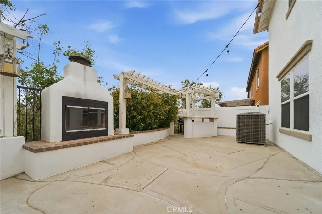 Step outside to your private backyard retreat featuring a custom patio area with pergola and built-in fireplace, ideal for entertaining guests or enjoying quiet evenings. The artificial grass in the front yard, side yard, and backyard provides year-round curb appeal while keeping maintenance low.
