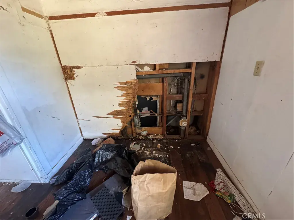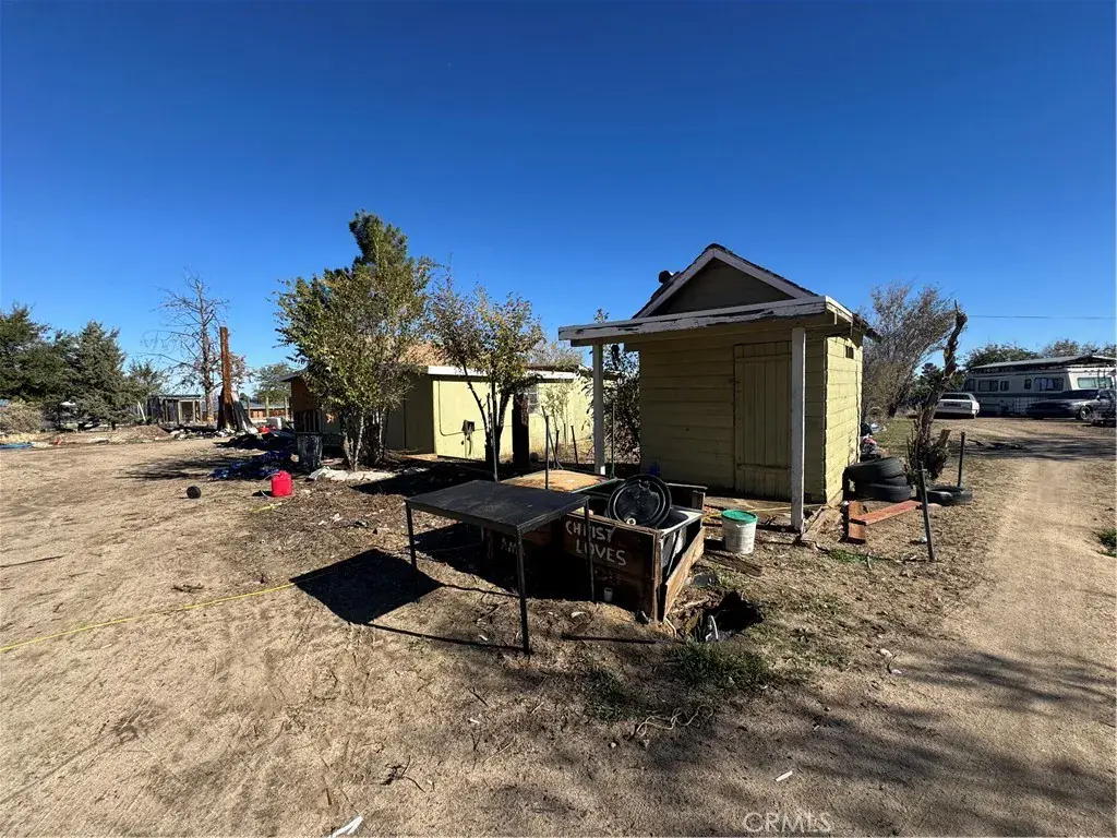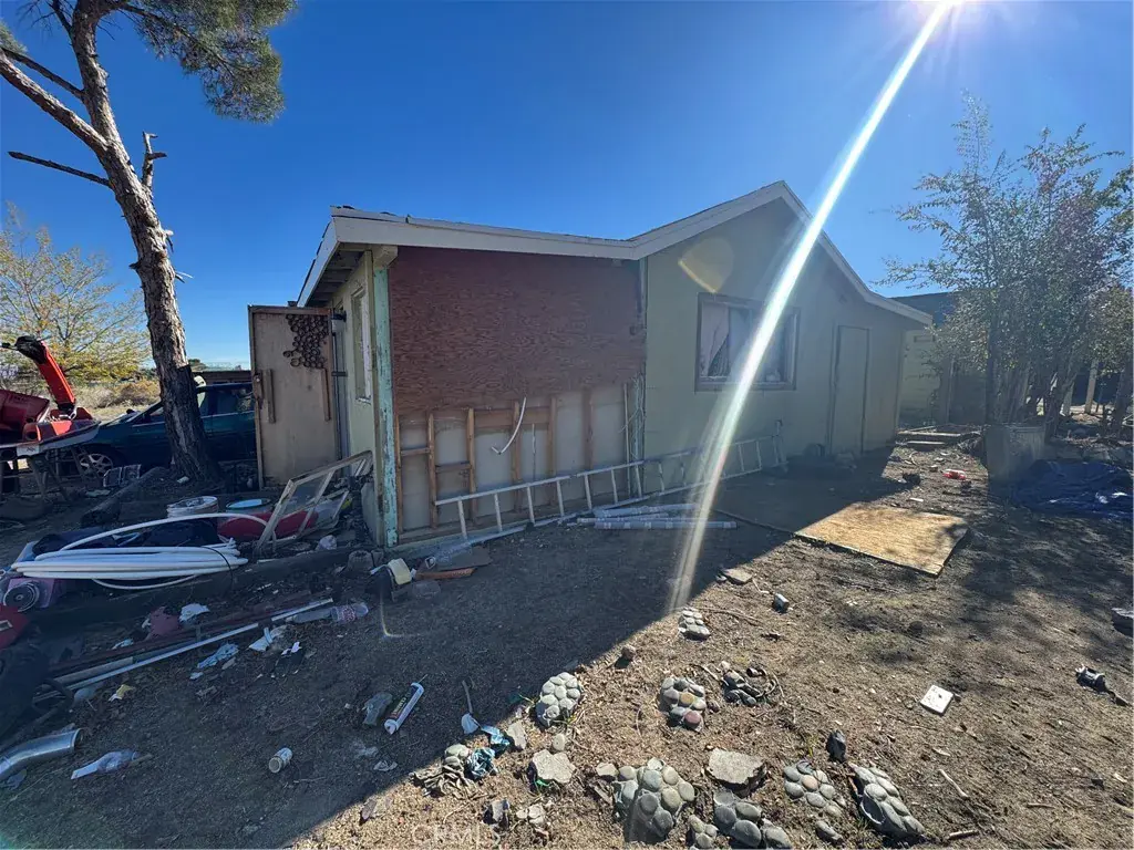 Fixer in Phelan. This home is in significant disrepair and will require a cash offer to purchase it since it will not meet financing guidelines in its current condition. It was previously a charming 1,152 square foot home that offers 2 bedrooms and 1 bath. It sits on a spacious lot that includes two separate parcels of land in the sale. There is one large bedroom with its own sliding glass door entrance. The second bedroom is also large and has wood beam ceilings. It has a large open kitchen space that opens to the living room. The property also includes several additional outbuildings. This will make a very nice project once finished because it is close to pavement and downtown, is completely fenced, and zoned for horses.