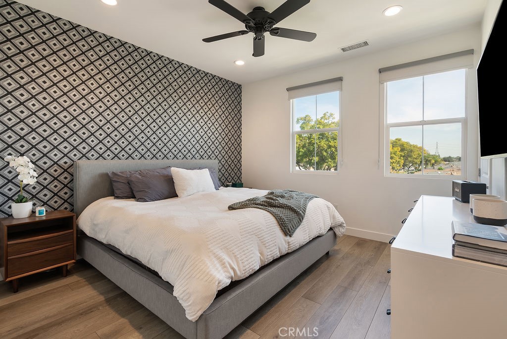 Welcome to 7686 Sunflower Dr, a modern & move in ready 2 bedroom, 2.5 bath front facing townhome built in 2018. This contemporary tri-level residence offers the perfect blend of style, efficiency & low-maintenance living. Thoughtfully designed, the home features an open-concept living area filled w/ abundant natural light, custom window treatments & a spacious kitchen complete w/ quartz countertops, stainless steel GE appliances & an oversized center island, ideal for entertaining or everyday living. The seamless flow between the kitchen, dining & living areas creates a bright & inviting atmosphere. Upstairs, you’ll find two primary bedrooms, both w/ en-suite bathrooms & walk in closets. The larger suite offers an oversized bathroom w/ a spacious shower, while the second bathroom includes a tub. Additional highlights include a paid off solar panel system for energy efficiency & reduced utility costs, an attached 2-car tandem garage w/ direct access & extra storage, outdoor balcony off the living room, indoor laundry w/ a newer stackable washer/dryer, custom vinyl flooring throughout & newer carpet on the stairs. This stylish home offers modern comfort, thoughtful upgrades & convenient living in a desirable Pico Rivera location.