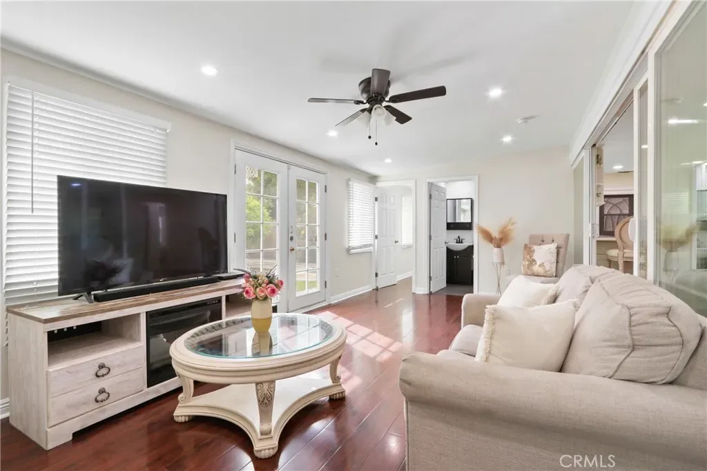 Welcome to 9558 Bert St in Pico Rivera. This 2 bed, 1 bath home lives like a 3 bed, 2 bath thanks to a finished enclosed patio that adds a great extension of the living space—perfect for a family room, guest area, or home office. The layout is open and inviting, with wood floors throughout, recessed lighting, and lots of natural light from upgraded vinyl windows. The kitchen has been nicely updated with white cabinetry, quartz countertops, stainless steel appliances, and a peninsula that works great for everyday dining or entertaining. The bathroom has been remodeled with marble flooring and a marble shower, giving it a clean, elevated feel. Out back, you’ll find a really great yard with multiple mature fruit trees and plenty of space to enjoy. There’s also a 2-car attached garage that includes laundry hookups. The Gorgeous Front Yard features huge driveway perfect for multiple cars and has so much space to play or entertain.
