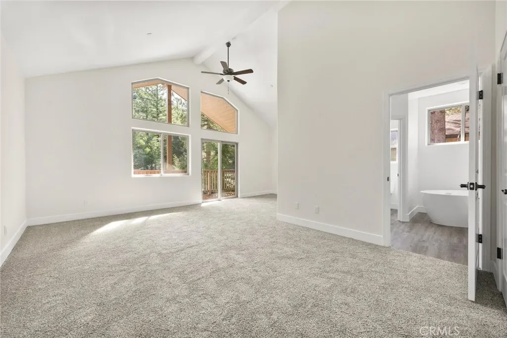 Upstairs, spaces remain fluid and adaptable. The primary suite is set apart, with vaulted ceilings, filtered light, and a private deck that looks out into the trees. The bath follows suit—spa-like, understated, and intentional.