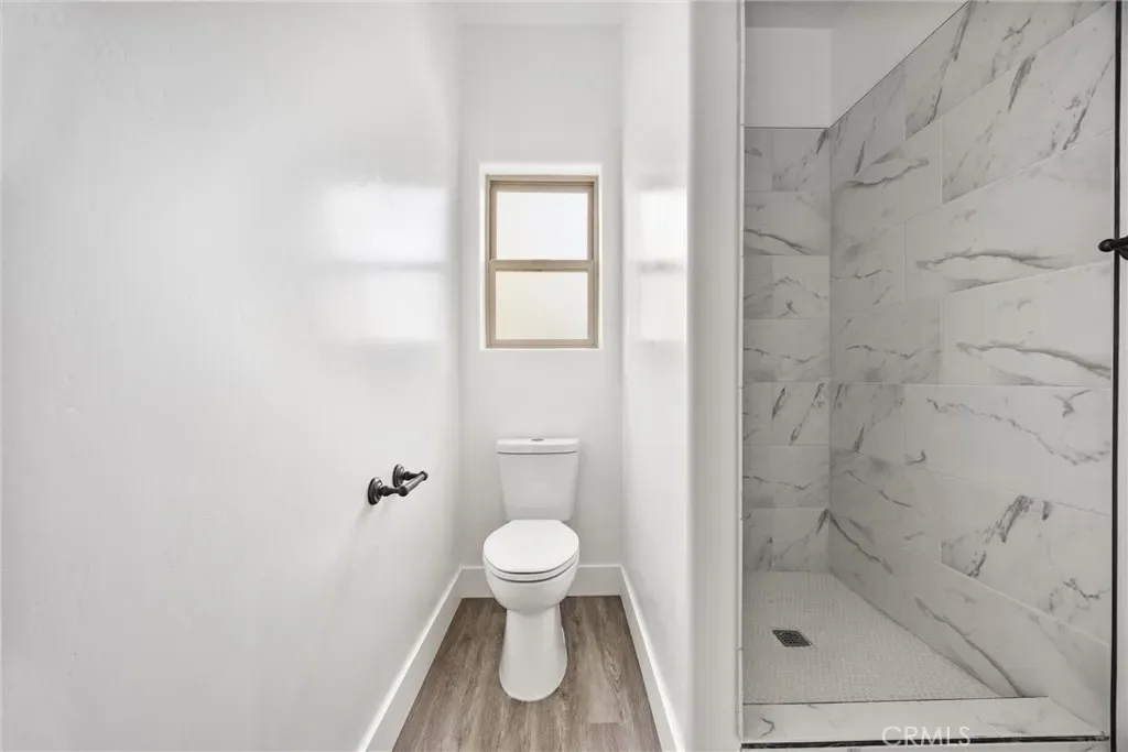 The kitchen is refined and minimal—marble surfaces, custom cabinetry, and a walk-in pantry—designed for function without excess.