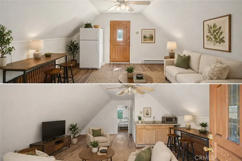 Offering 3 bedrooms, 2 bathrooms, and approximately 1,308 sq ft of living space on a spacious 10,018 sq ft lot, this home features a versatile layout with two living areas in one. The main level includes 2 bedrooms, 1 bathroom, and a full kitchen, while the second level offers 1 bedroom, 1 bathroom, and a kitchenette with sink and refrigerator included. With separate entrances for added privacy, the property is ideal for multi-generational living or for those looking to live in one level and rent the other as a short-term rental.