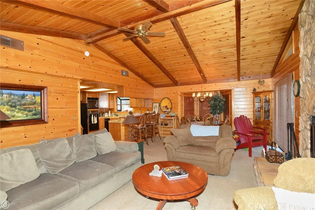 Next level down is an oversized Laundry room, A well stocked Game room, look at the photos and 2 more bedrooms. Also is a like new Sauna in its own area all on the way to the 2 car garage entrance. Included is a Tankless Water Heater, New toilets,New roof, 200amp electric panel and gutters. Don’t let me forget the beamed ceilings and T & G ceilings and walls w/ oversized wraparound decks. Also included is the adjoining Lot 2424 Innsbruck APN 316-233-06 almost a 1/2 acre. Also some pear trees by the driveway. You must see this special home