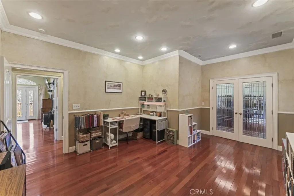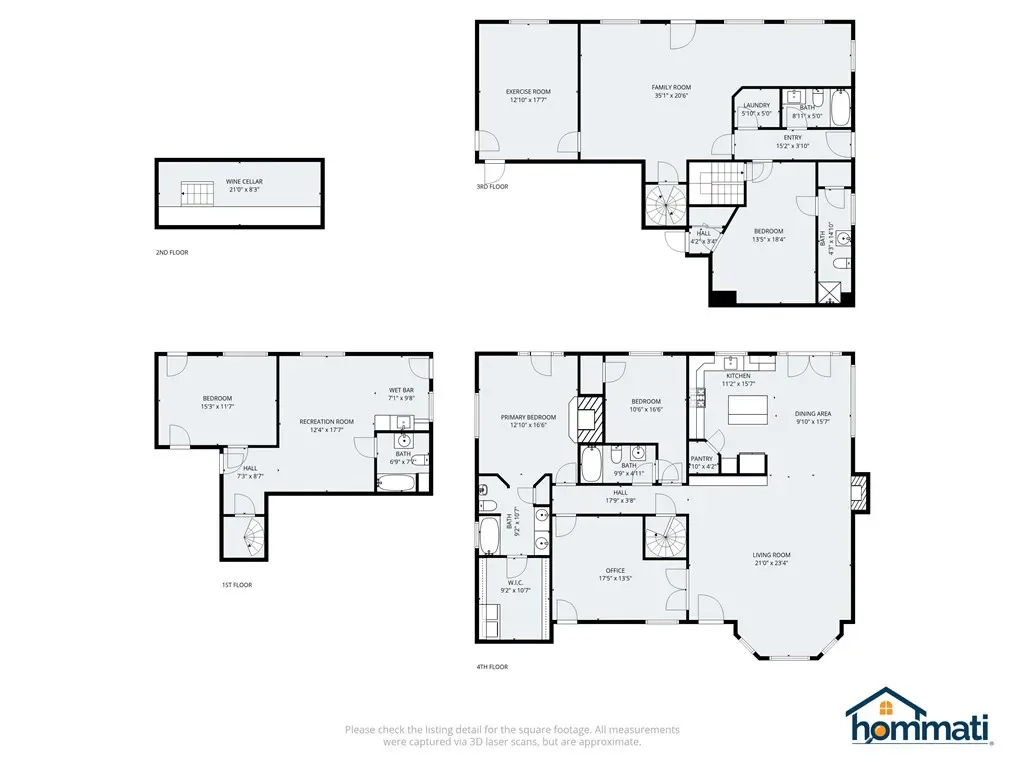 The second level features hand-milled wood flooring, newer carpeting, a bedroom, a spacious family room with plumbing and a gas line in place for a potential kitchenette or wet bar, a large storage area, and an additional room currently used as a home gym. The entry way and both bathrooms on this level are decorated handsomely with imported tile. This floor also features a wine cellar.